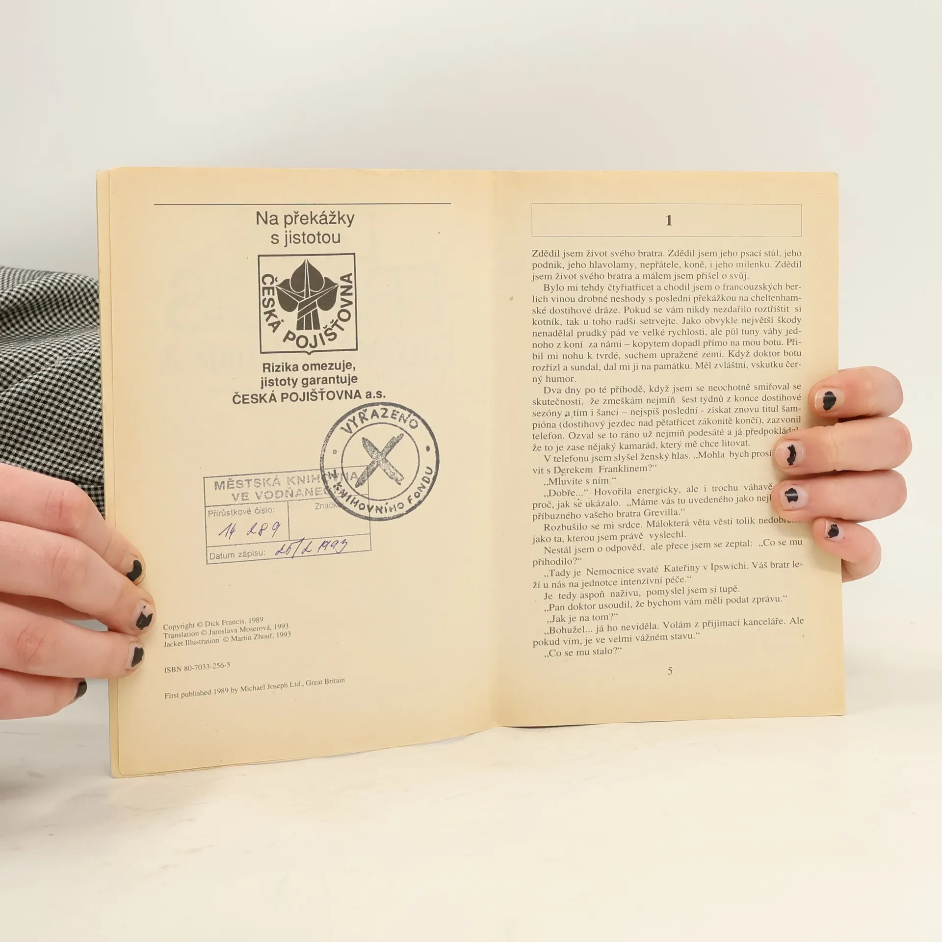 Překážkový jezdec na vrcholu kariéry Derek Franklin si právě léčí roztříštěný kotník, když se dozví, že jeho o devatenáct let starší bratr Greville umírá po těžkém úrazu. Vypraví se za ním do nemocnice, aby s ním strávil jeho poslední chvíle, a netuší, co všechno ho v nejbližší době čeká. Zdědí totiž život svého bratra, jeho psací stůl, jeho podnik pro import drahokamů, jeho zálibu v nesčetných přístrojích a hlavolamech, jeho milenku, koně, ale také jeho nepřátele, kteří ho málem o Grevillův podnik připraví. Teprve v cílové rovince tohoto mimořádného dostihu se rozhodne, jestli neztratí svůj život a zda sám obstojí se ctí.