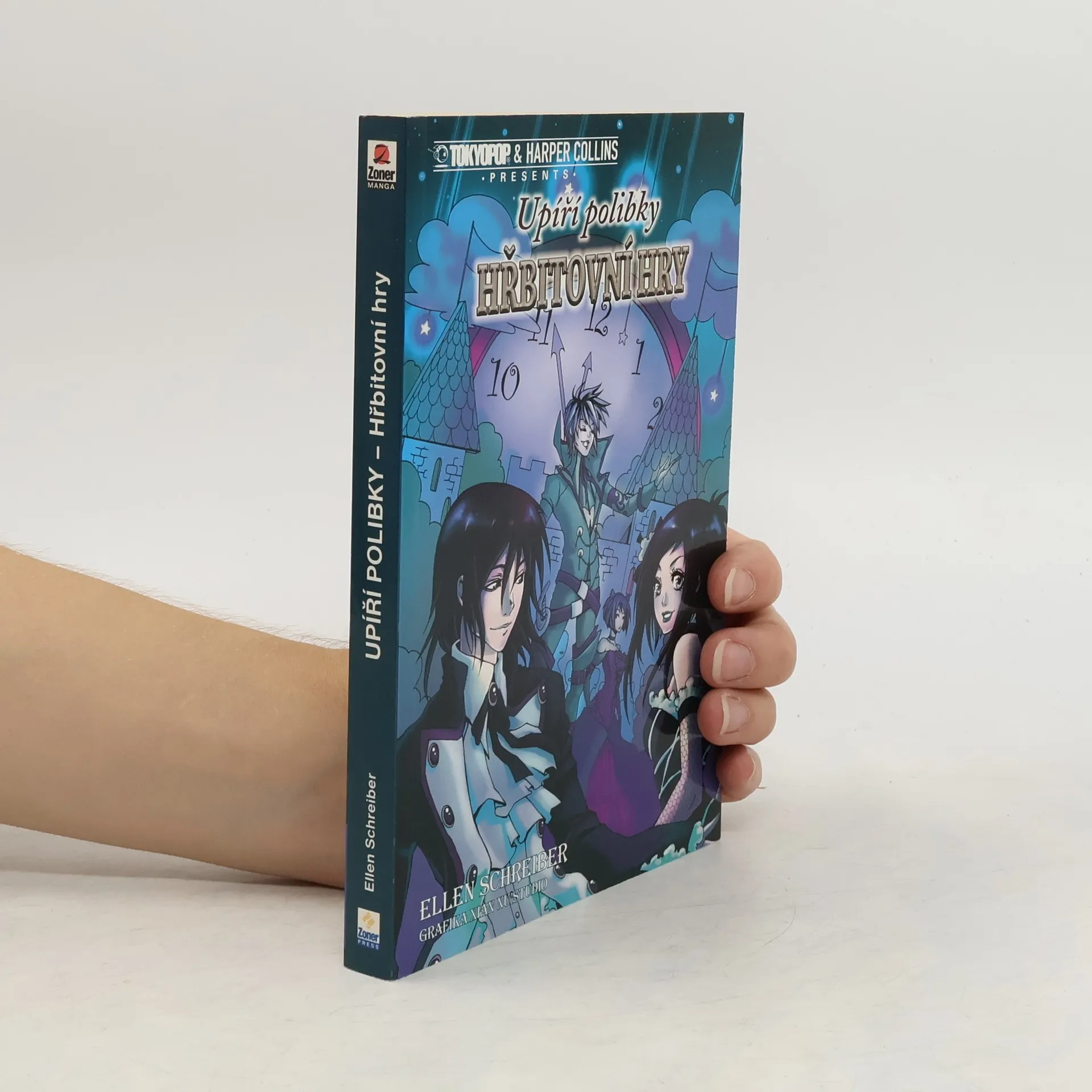 Čtivý komiks pro všechny příznivce upírů. Už jste viděli gotickou Popelku? Ne? Tak to si rozhodně nenechte ujít mangu Upíří polibky: Hřbitovní hry. Oblíbená gotička Raven se vrací a s ní i její milý, upír Alexander, všichni spolužáci a obyvatelé městečka Dullsville. A o dobrodružství i srandu nebude nouze ani tentokrát. Alexander totiž není jediný upír, který v městečku přebývá… ovšem je asi jediný, jenž nemá nějaké postranní úmysly. Raven přítomnost ostatních upírů vrtá hlavou, ale protože se u ní na škole nacvičuje muzikál o Popelce, nemá na nic čas, ani na Alexandera. S přicházející premiérou se blíží i vyvrcholení nekalých plánů ostatních upírů. Stihnou je Raven s Alexandrem prokouknout a zastavit dříve, než spadne opona? Manga Upíří polibky: Hřbitovní hry z pera Ellen Schreiber volně navazuje na předchozí trilogii Pokrevní příbuzní, která zaznamenala nebývalý čtenářský zájem.