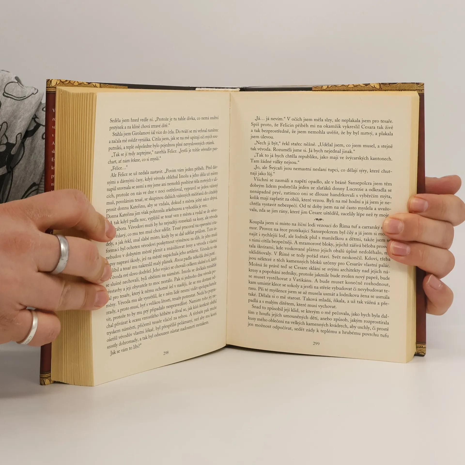 Vášnivý příběh z počátku 16. století je zasazen do velkolepých kulis dvora ferrarských vévodů, který byl jedním z nejmocnějších v renesanční Itálii. Právě sem provdal papež Alexandr VI. z rodu Borgiů svou nemanželskou dceru Lucrezii, aby spojením s rodem Este upevnil svou politickou moc. Osudy krásné Lucrezie – oslavované i proklínané, pro jedny světice a pro jiné nejzvrhlejší hříšnice – sledujeme očima její dvorní dámy Violanty, pokřtěné Židovky, jejíž bohatá rodina přišla do Říma ze Španělska, původní vlasti Borgiů. Dívka, jež se těší Lucreziině přízni i přátelství jejího okolí, podlehne svodům oslnivého, ale krutého a bezohledného Cesara Borgii, bratra své paní, a láska ji zavleče do sítě borgiovských intrik, zrad a úkladů, jež podrobí její srdce těžké zkoušce a její duši obtíží strašnými tajemstvími, která si musí odnést do hrobu.