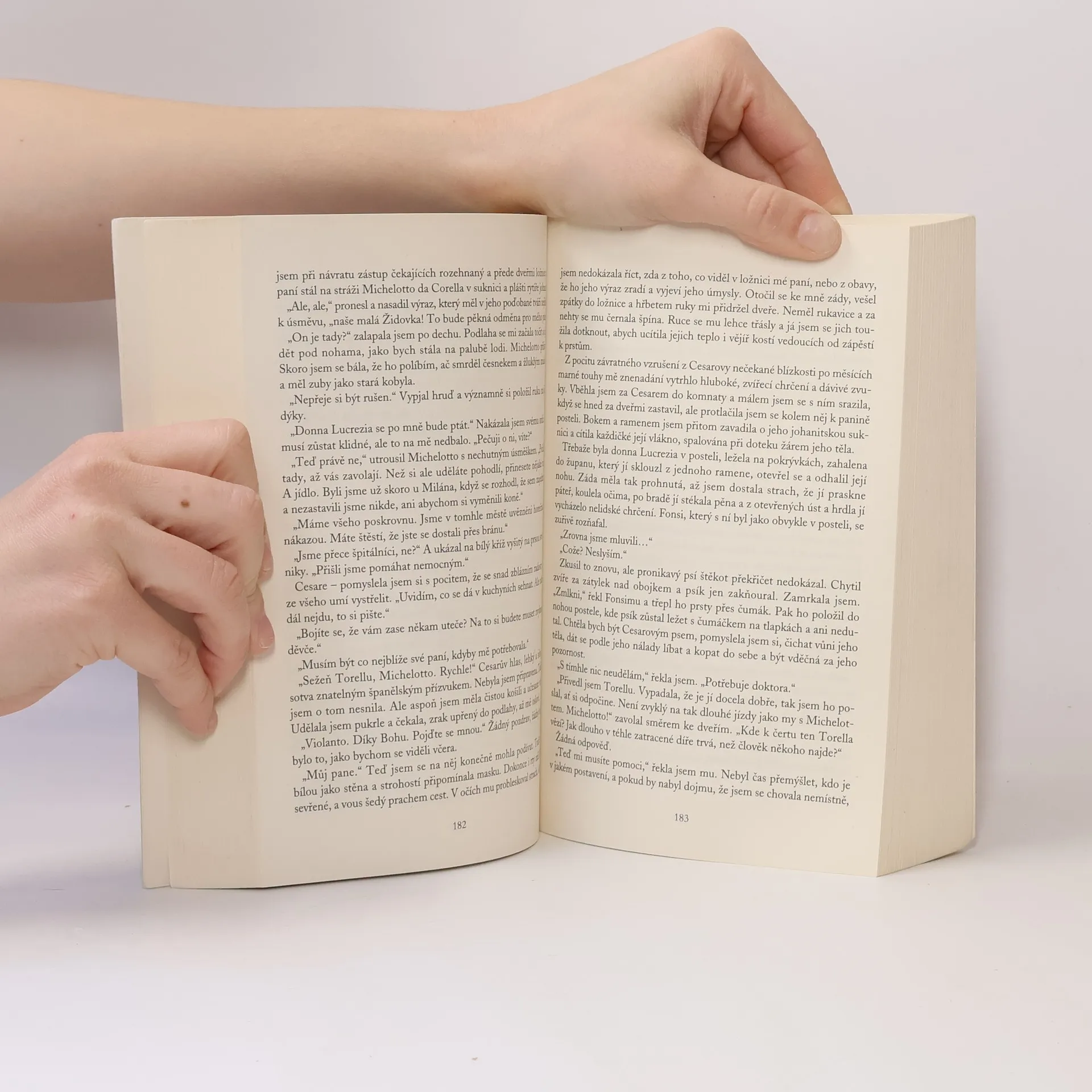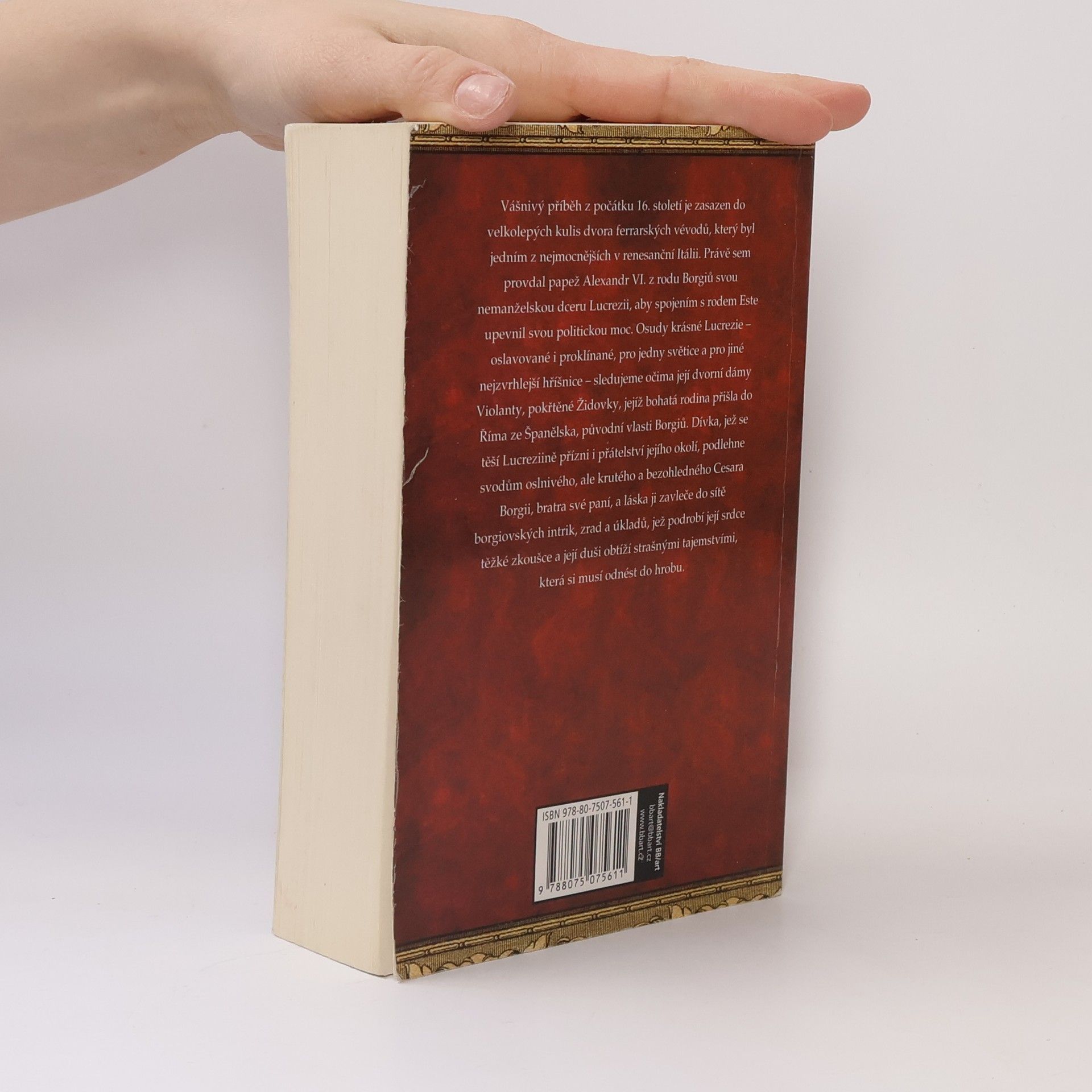 Vášnivý příběh z počátku 16. století je zasazen do velkolepých kulis dvora ferrarských vévodů, který byl jedním z nejmocnějších v renesanční Itálii. Právě sem provdal papež Alexandr VI. z rodu Borgiů svou nemanželskou dceru Lucrezii, aby spojením s rodem Este upevnil svou politickou moc. Osudy krásné Lucrezie – oslavované i proklínané, pro jedny světice a pro jiné nejzvrhlejší hříšnice – sledujeme očima její dvorní dámy Violanty, pokřtěné Židovky, jejíž bohatá rodina přišla do Říma ze Španělska, původní vlasti Borgiů. Dívka, jež se těší Lucreziině přízni i přátelství jejího okolí, podlehne svodům oslnivého, ale krutého a bezohledného Cesara Borgii, bratra své paní, a láska ji zavleče do sítě borgiovských intrik, zrad a úkladů, jež podrobí její srdce těžké zkoušce a její duši obtíží strašnými tajemstvími, která si musí odnést do hrobu.