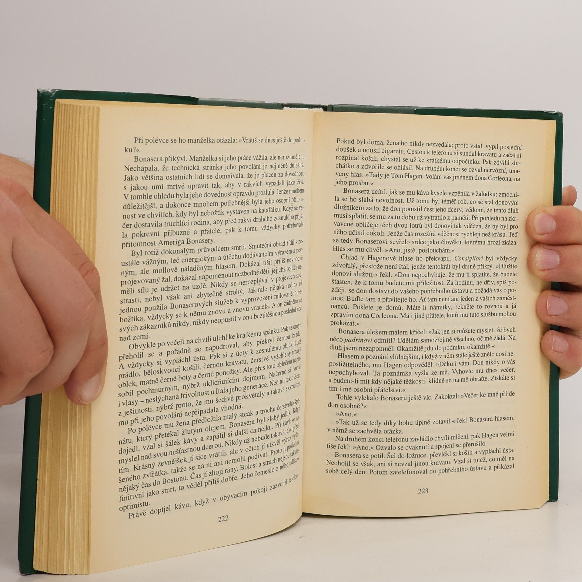 Znamenité, sugestivní dílo o bossovi všech bossů, jehož vliv sahal od policie až po finanční magnáty, si získalo popularitu především proto, že zachytilo klasickou mafii v konkrétní době a v místech, kde existuje dodnes. Tajemství rodinných svazků a zločinu vyvolalo zájem velkého množství čtenářů, podpořený i filmovým zpracováním, jež s Marlonem Brandem a Al Pacinem v hlavních rolích natočil Francis Ford Coppola. "Americká sága" newyorského podsvětí detailně odkrývající přísně dodržovaná pravidla znovu oživuje historii krvavé války klanu Corleonů proti čtyřem dalším famigliím. Don Corleone, před nímž se třesou i ti nejmocnější, drží pevně všechny nitky vedoucí ke světu pašeráků, vyděračů i hazardních hráčů, kteří si podali ruku se zločinem a zákonem krevní msty. Čelit organizované zločinnosti financované špinavými penězi z obchodu s drogami a zneužívající bankovní systém však není jednoduché. Zvláště když mafiáni jednají v duchu hesla Questa guerra e cosa Nostra - Tato válka je naše věc.... celý text