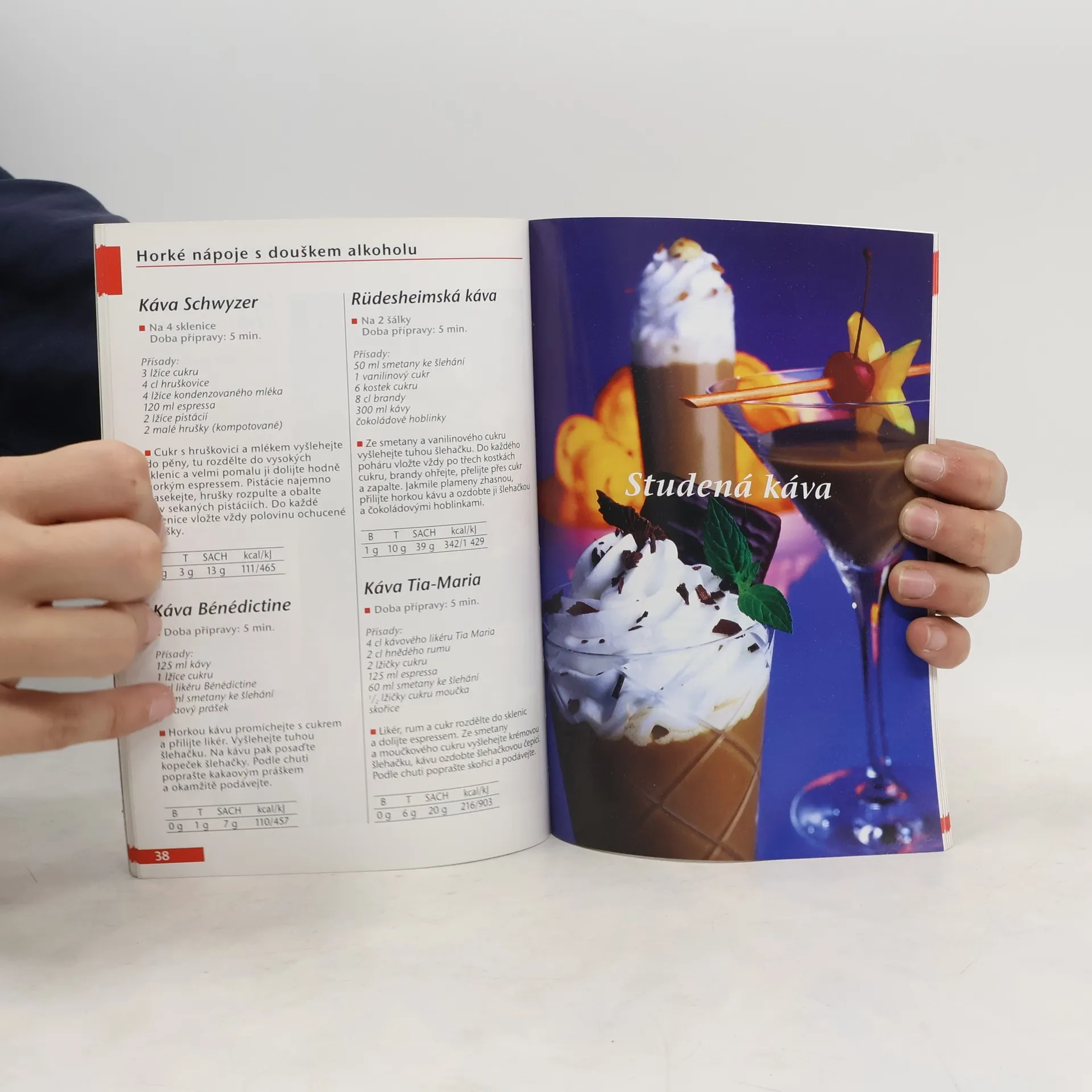 -Původ, historie a kultura pěstování, přípravy a konzumace kávy. -Vliv povzbuzujících složek na zdraví a kondici. -Správný výběr a zásady domácí přípravy kávy. -Teplé i studené nápoje z kávy, kombinace kávy s mlékem, čokoládou, medem, alkoholem, bylinami a kořením. Reprezentační výběr vyzkoušených předpisů z celého světa. -Recepty na drobné pečivo, cukroví a jiné cukrářské lahůdky vhodné pro kávové dýchánky.