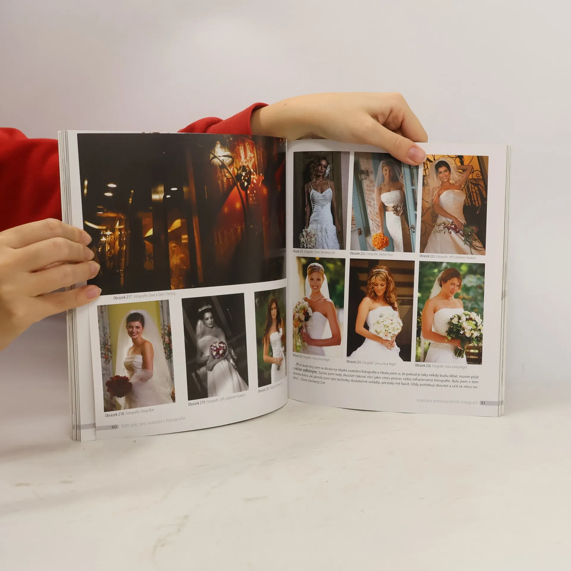 Fotografování svatby bývá skutečně velkou výzvou. Na snímcích je kromě jedinečnosti okamžiku nutné zachytit především krásu nevěsty a zde může být užitečnou pomůckou katalog osvědčených póz, který vám usnadní výběr té nejvhodnější pózy a celkové kompozice. Řada fotografií od světově uznávaných profesionálních fotografů pak poskytuje dostatek nápadů a inspirace pro vaši práci.