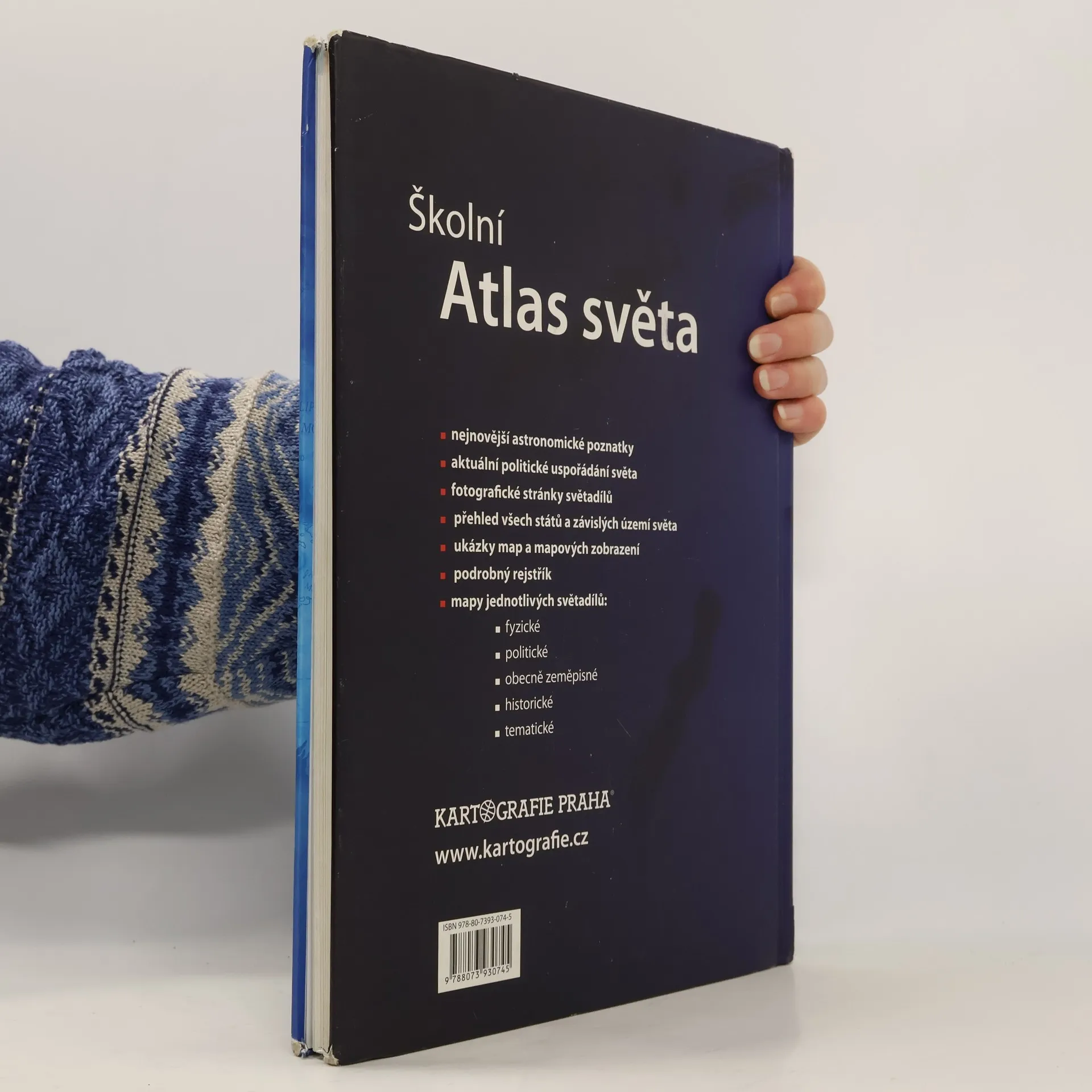 Nejnovější astronomické poznatky, aktuální politické uspořádání světa. Vybíráme z obsahu: přehledné mapy světa, tematické mapy světa, fotografické stránky světadílů s tabulkami, mapy jednotlivých světadílů: obecně zeměpisné, politické, historické, demografické, hospodářské; ukázky map a zobrazení, rejstřík. Třetí vydání.