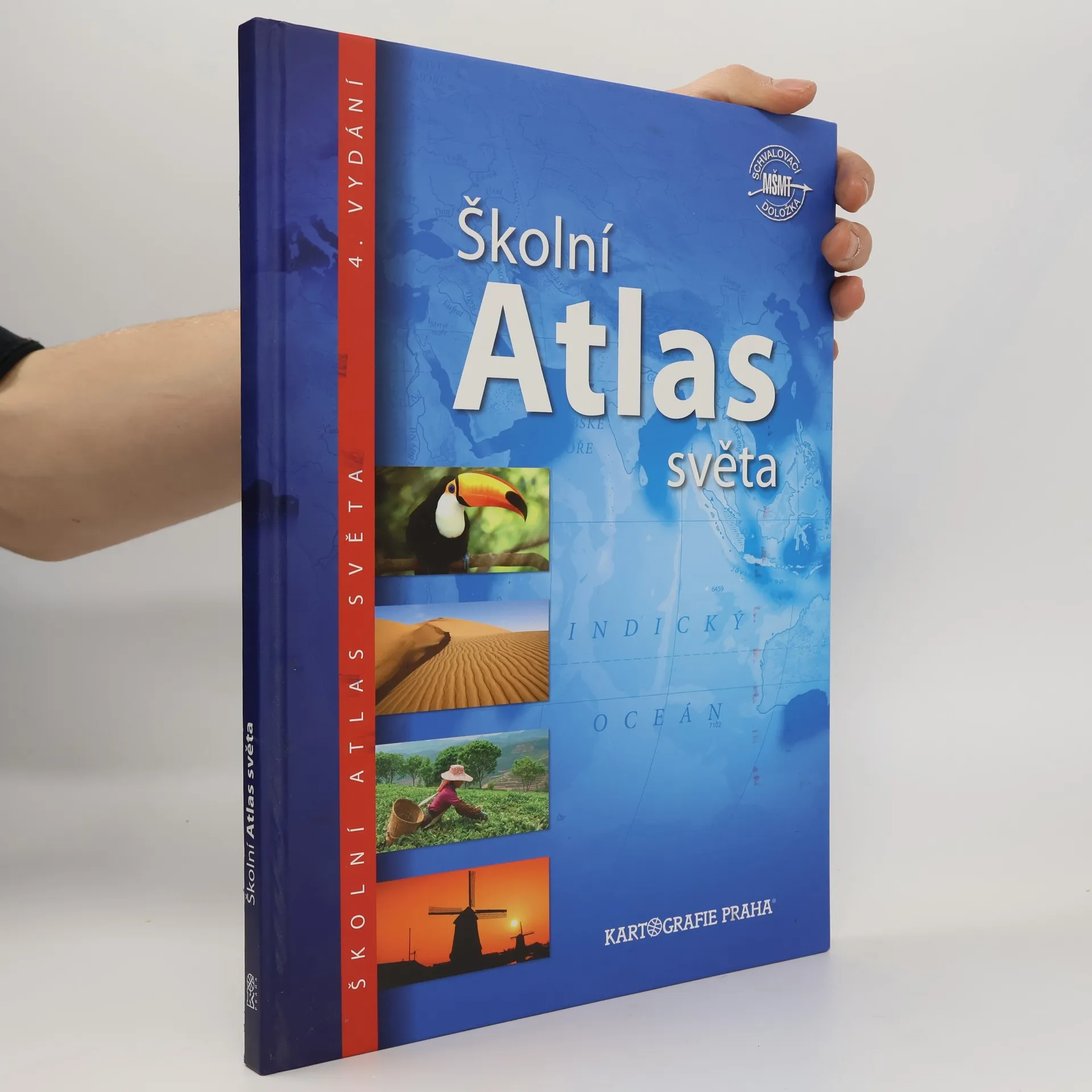 Nejprodávanější český školní atlas je univerzální pomůckou pro výuku zeměpisu na všech stupních škol. Atlas je rozdělen do tematických kapitol s barevným odlišením, což usnadňuje orientaci v mapách. Úvodní část obsahuje nejnovější astronomické poznatky o vesmíru a Sluneční soustavě. Následuje kapitola Svět s tematickými mapami zaměřenými na přírodu, obyvatelstvo, hospodářství a prostředí, v němž lidé žijí. Části věnované jednotlivým světadílům zahrnují podrobné obecně zeměpisné mapy s doplňujícími tematickými mapami a historickými mapami klíčových etap vývoje kontinentů, což umožňuje mezipředmětovou výuku. Mapovou část každého světadílu uvádějí fotografické stránky s charakterizujícím textem a tabulkou geografických údajů. Atlas obsahuje přehlednou tabulku všech států a závislých území světa, tabulky zeměpisných rekordů a rejstřík s více než 15 000 názvy. Čtvrté vydání navazuje na úspěšná vydání z let 2004, 2007 a 2011. Mezi novinky patří témata jako zaměstnanost žen, vzdělání, zdravotnictví a kvalita života, nové téma Ohniska napětí ve světě, fyzická a administrativní mapa Česka, podrobná mapa severní Asie a vylepšený znakový klíč obecně zeměpisných map pro lepší čitelnost.