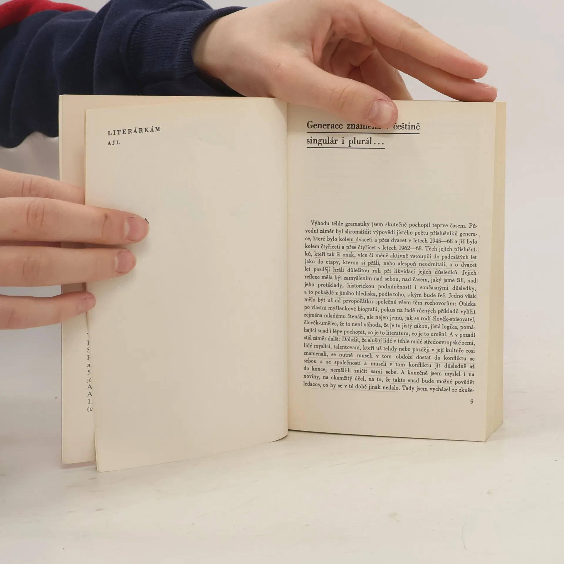 Rozhovory z let 1966–1968 s L. Novomeským, E. Krumbachovou, M. Kunderou, J. Škvoreckým, L. Vaculíkem, J. Muchou, J. Putíkem, D. Tatarkou, E. Goldstückerem, A. Bednárem, L. Čivrným, J. Skácelem, P. Karvašem, I. Klímou, V. Havlem, doplněné předmluvou J. P. Sartra k francouzskému vyd. (1970) a rozhovory s E. Hostovským (1973) a J. Voskovcem (1981).