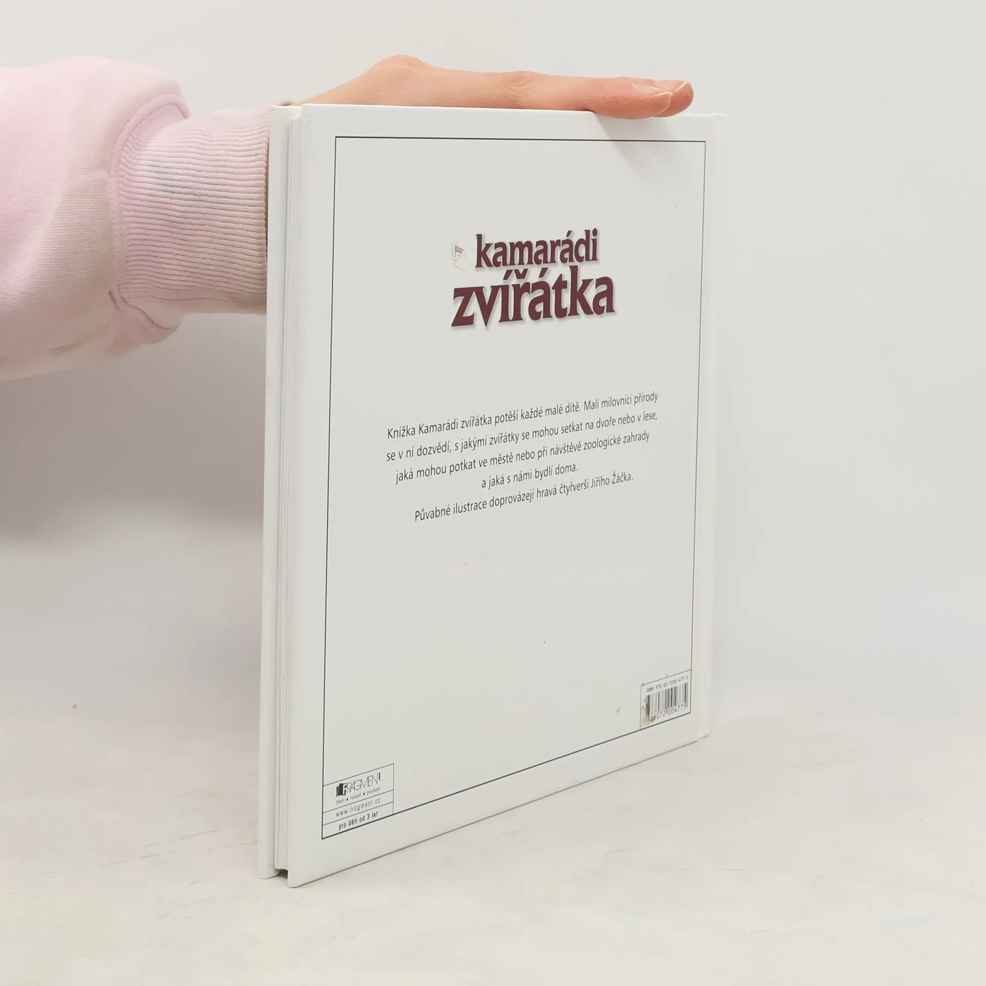 Knížka Kamarádi zvířátka potěší každé malé dítě. Malí milovníci přírody se v ní dozvědí, s jakými zvířátky se mohou setkat na dvoře nebo v lese, jaká mohou potkat ve městě nebo při návštěvě zoologické zahrady a jaká s námi bydlí doma. Půvabné ilustrace doprovázející hravá čtyřverší Jiřího Žáčka.