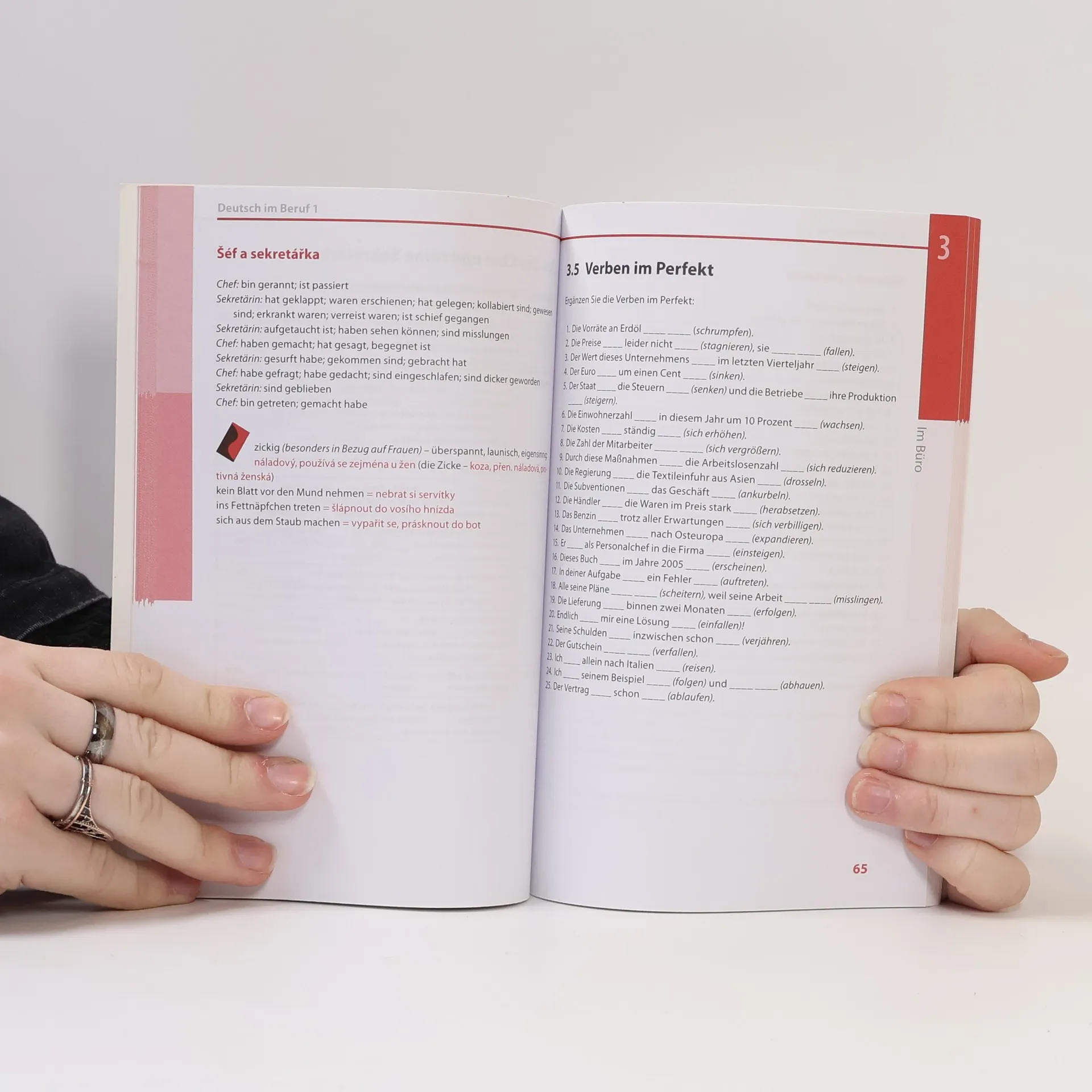 Zlepšete si svou němčinu na zajímavých a zábavných cvičeních tematicky souvisejících s využitím němčiny v práci. Kniha obsahuje procvičování gramatiky a slovní zásoby i porozumění textům. Struktura cvičebnice s klíčem na zadní straně každého cvičení umožňuje používat knihu jak v kurzech němčiny, tak při samostudiu. Tematicky se cvičebnice věnuje těmto oblastem: kontakty, práce v kanceláři, prezentace, hledání práce a také mimopracovním tématům. Najdete v ní i slovní zásobu týkající se mailů, internetu a počítačů. Pozornost je věnována jevům, ve kterých se často chybuje, i jevům potřebným pro komunikaci v praxi. Texty k porozumění slouží i k rozšiřování slovní zásoby. Kniha je určena široké veřejnosti a zejména těm, kteří používají německý jazyk v práci nebo se o tuto oblast zajímají.