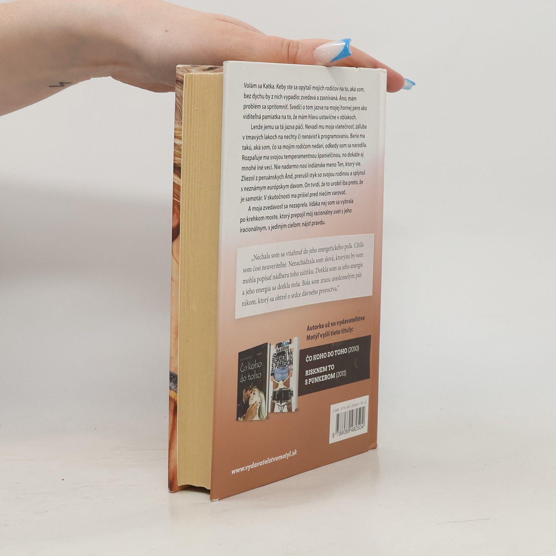 Volám sa Katka. Keby ste sa opýtali mojich rodičov na to, aká som, bez dychu by z nich vypadlo: zvedavá a zasnívaná. Áno, mám problém sa sprítomniť. Svedčí o tom jazva na mojej hornej pere ako viditeľná pamiatka na to, že mám hlavu ustavične v oblakoch. Lenže jemu sa tá jazva páči. Nevadí mu moja všetečnosť, záľuba v tmavých lakoch na nechty či nenávisť k programovaniu. Berie ma takú, aká som, čo sa mojim rodičom nedarí, odkedy som sa narodila. Rozpaľuje ma svojou temperamentnou španielčinou, no dokáže aj mnohé iné veci. Nie nadarmo nosí indiánske meno Ten, ktorý vie. Zliezol z peruánskych Ánd, prerušil styk so svojou rodinou a splynul s neznámym európskym davom. On tvrdí, že to urobil iba preto, že je samotár. V skutočnosti ma prišiel pred niečím varovať. A moja zvedavosť sa nezaprela. Vďaka nej som sa vybrala po krehkom moste, ktorý prepojil môj racionálny svet s jeho iracionálnym, s jediným cieľom: nájsť pravdu.