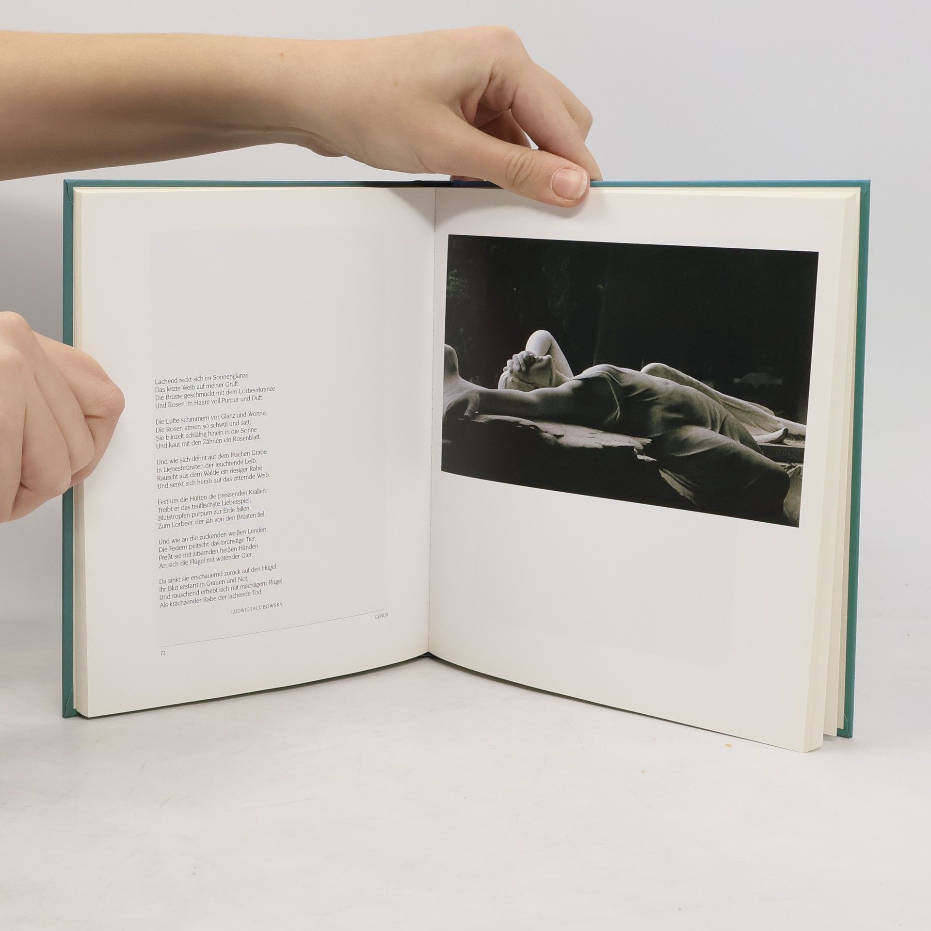 Denn alle Lust will Ewigkeit, hat die bekannte Portrait-Fotografin Isolde Ohlbaum als Titel ihres Fotobandes gewählt. Gedanken von der Unsterblichkeit der Liebe. Eros und Thanatos, zwei bedeutende Themen der Literatur und der bildenden Künste, verschmelzen in Ohlbaums Aufnahmen der mal erotisch verführerischen, mal keuschen, fast monochromen Grabskultpturen aus dem 19. und 20. Jahrhundert. Die steinernen Körper erhalten durch Licht und Schatten, durch Nässe und Moos, für einen Augenblick Lebendigkeit, den Augenblick, in dem der Wunsch nach Unsterblichkeit entsteht.§Dieses Motiv haben die Dichter immer wieder beschworen. Die Götter der Liebe und des Todes als Zwillingsbrüder, gesehen von Baudelaire, Heine, Rilke und vielen anderen, geben den Bildern eine zusätzliche Dimension. Isolde Ohlbaum hat ihre persönliche ästhetische Sicht der Skulpturen und Strophen unvergänglicher Dichtung originell zusammengestellt.§