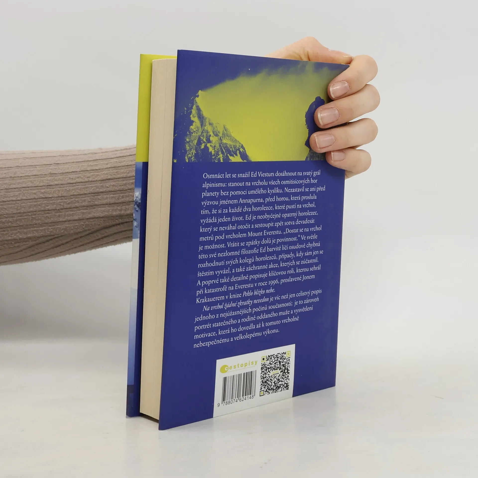 Osmnáct let se snažil Ed Viesturs dosáhnout na svatý grál alpinismu: stanout na vrcholu všech osmitisícových hor planety bez pomoci umělého kyslíku. Je to neobyčejně opatrný horolezec, který se neváhal otočit a sestoupit zpět sotva devadesát metrů pod vrcholem Mount Everestu. A nezastavil se ani před výzvou jménem Annapurna, před horou, která proslula tím, že si vyžádá za každé dva horolezce, které pustí na svůj vrchol, jeden život. „Dostat se na vrchol je možnost. Vrátit se zpátky dolů je povinnost.“ Ve světle své nezlomné filozofie líčí Ed osudově chybná rozhodnutí svých kolegů horolezců, několik případů, kdy sám jen se štěstím vyvázl, a také pár záchranných akcí, kterých se zúčastnil. A poprvé také detailně popisuje klíčovou roli, kterou sehrál při katastrofě na Everestu v roce 1996, proslavené Jonem Krakauerem v jeho knize Into Thin Air. Na vrchol žádné zkratky nevedou je víc než jen celistvý popis jednoho z nejúžasnějších počinů současnosti; je to zároveň portrét statečného a rodině oddaného muže a vysvětlení motivace, která jej dohnala až k tomuto vrcholně nebezpečnému a velkolepému výkonu. V epilogu hovoří Viesturs o uběhnutí svého prvního newyorského maratonu a o své výpravě na jaře roku 2007 na kanadský Baffinův ostrov, kde studoval dopady globálního oteplování.