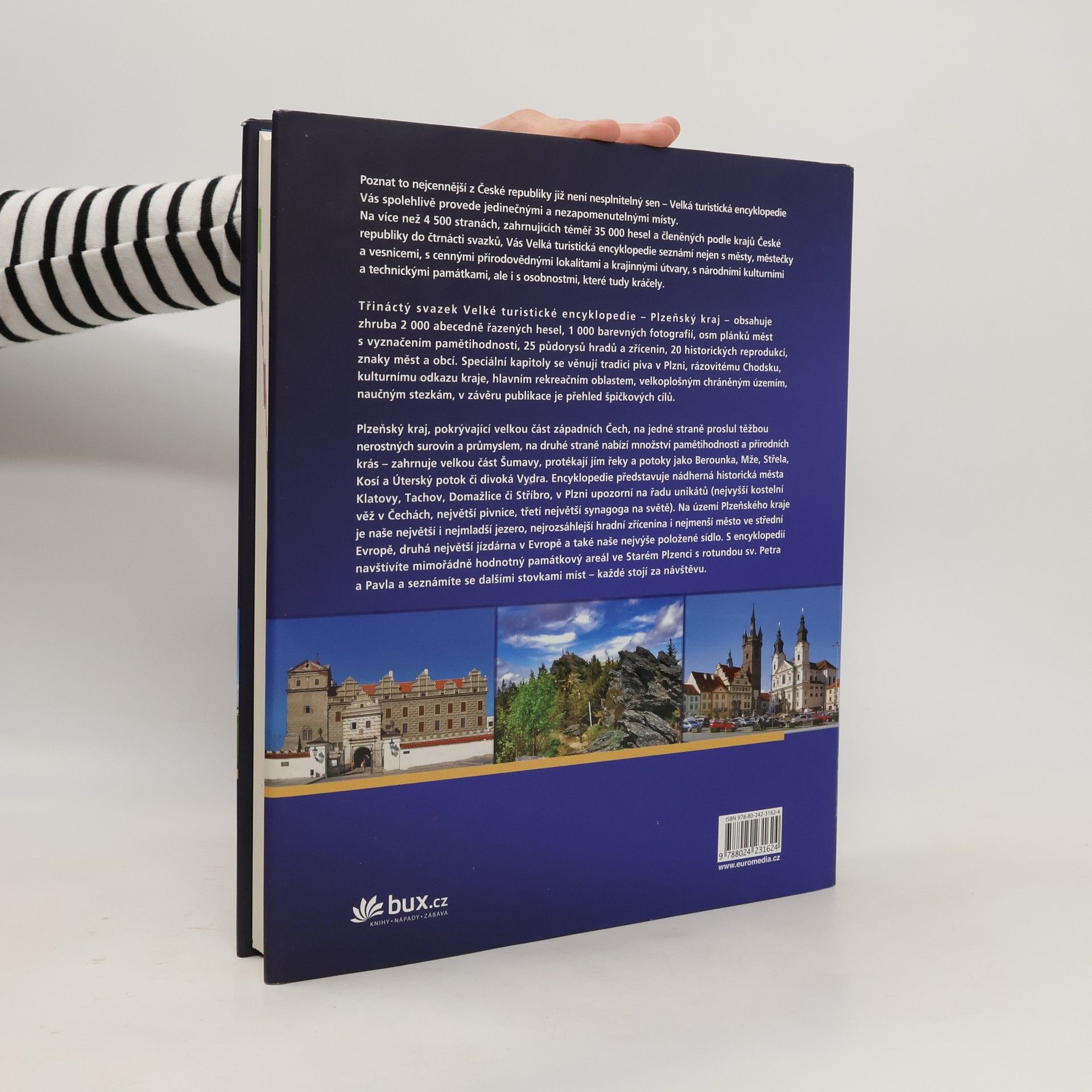 Plzeňský kraj, který tvoří třináctý svazek řady Velkých turistických encyklopedií, je rozlohou třetím největším krajem ČR, jehož přirozeným centrem je již od svého vzniku město Plzeň. Typické pro kraj je množství obcí a menších městeček s půvabnou architekturou a velká rozmanitost přírodních podmínek s dominantou Šumavy a Českého lesa. K historickým a duchovním památkám kraje patří například zámecký areál v Horšovském Týnu, klatovské katakomby, majestátní vodní hrad Švihov či vrcholné Santiniho dílo kladrubský klášter, třetí největší chrám v českých zemích.