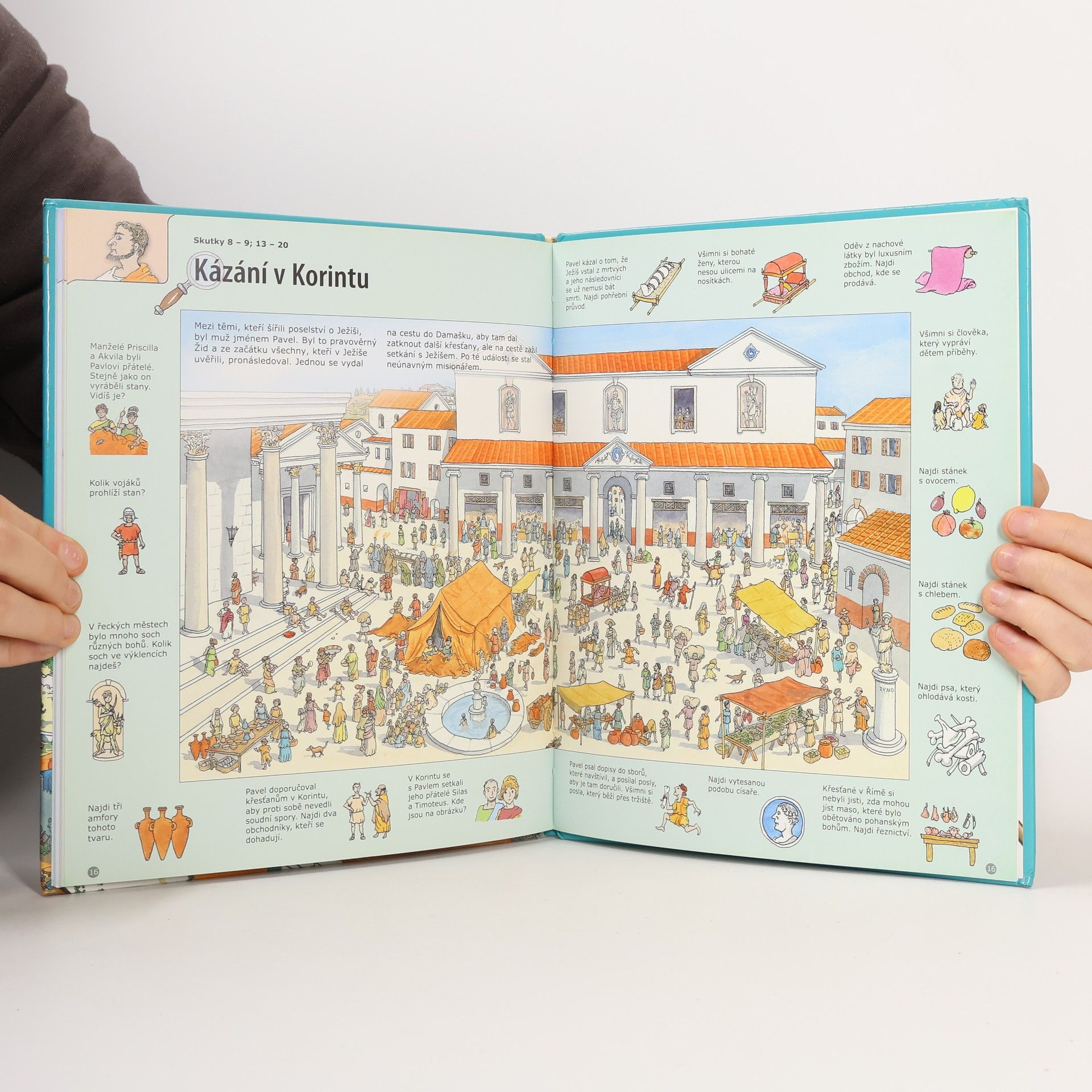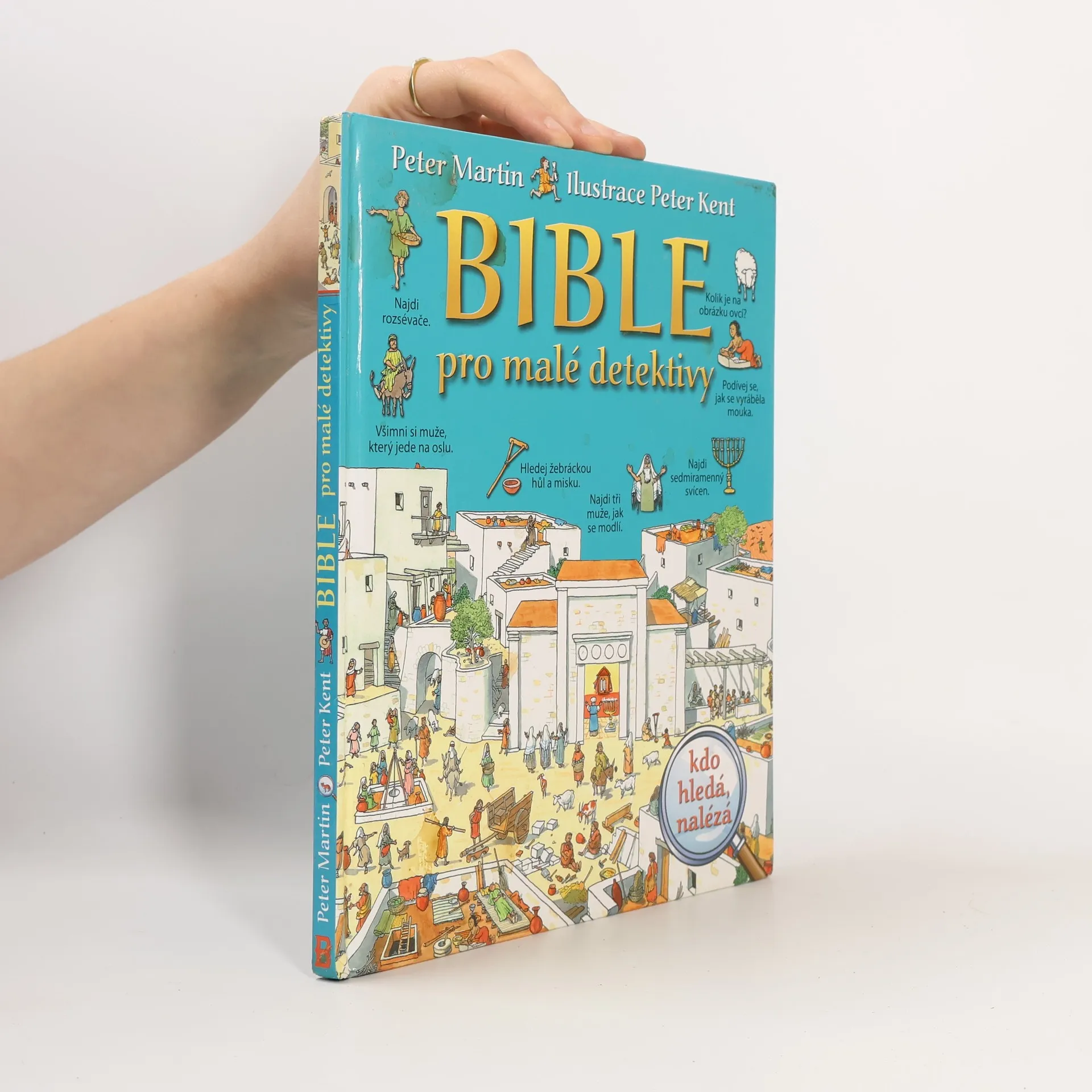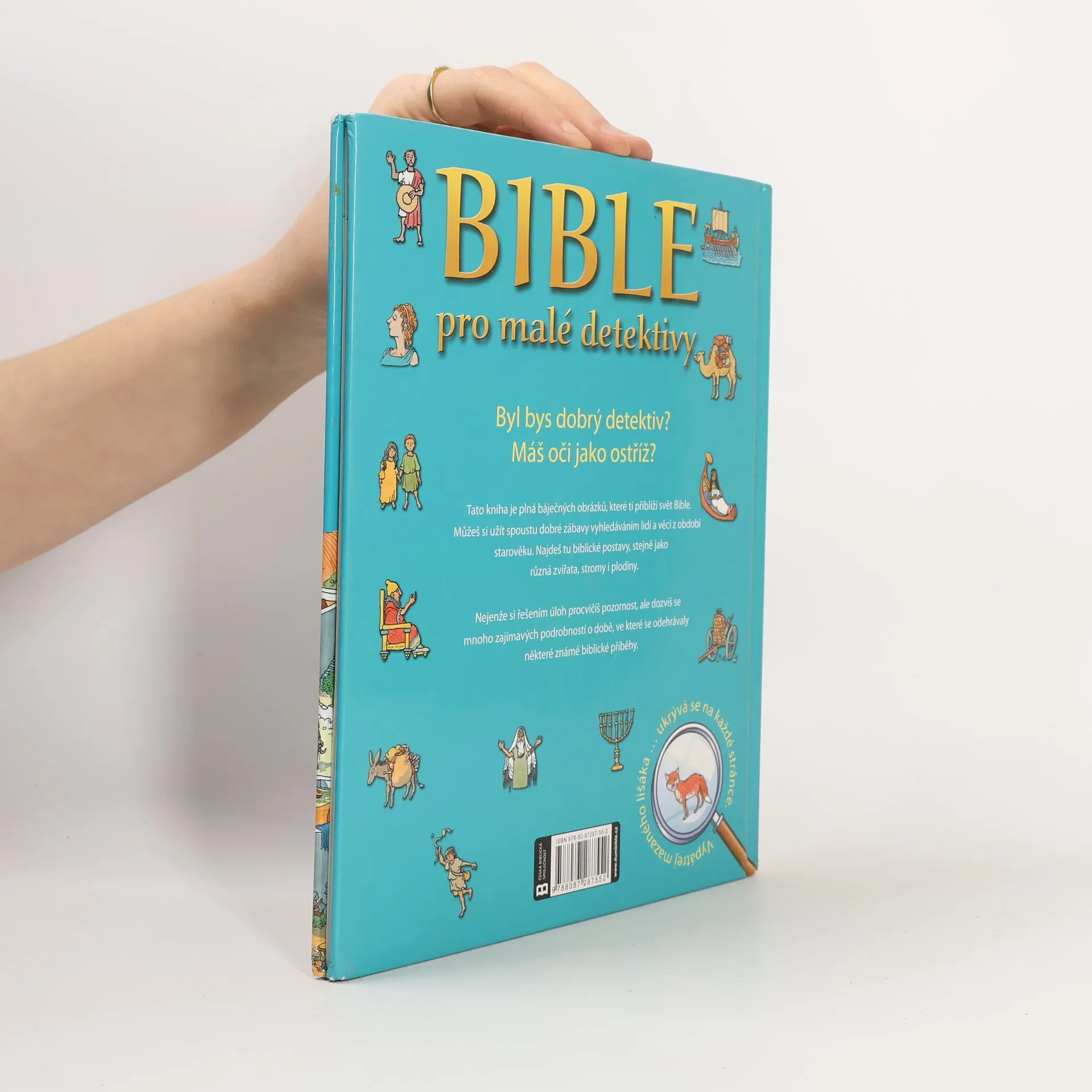 Bohatě ilustrovaná kniha přibližuje malým čtenářům vtipným způsobem svět Bible. Děti si mohou zahrát na detektivy a užijí si spoustu dobré zábavy vyhledáváním lidí, věcí, zvířat, stromů i různých plodin z období starověku na sedmnácti celostránkových obrázcích. Nejenže si řešením úloh procvičí pozornost, ale dozví se mnoho zajímavých podrobností o době, ve které se odehrávaly některé známé biblické příběhy. A navíc… na každé dvoustraně se skrývá mazaný lišák. Kdo jej najde na všech obrázcích, je opravdovým detektivem!