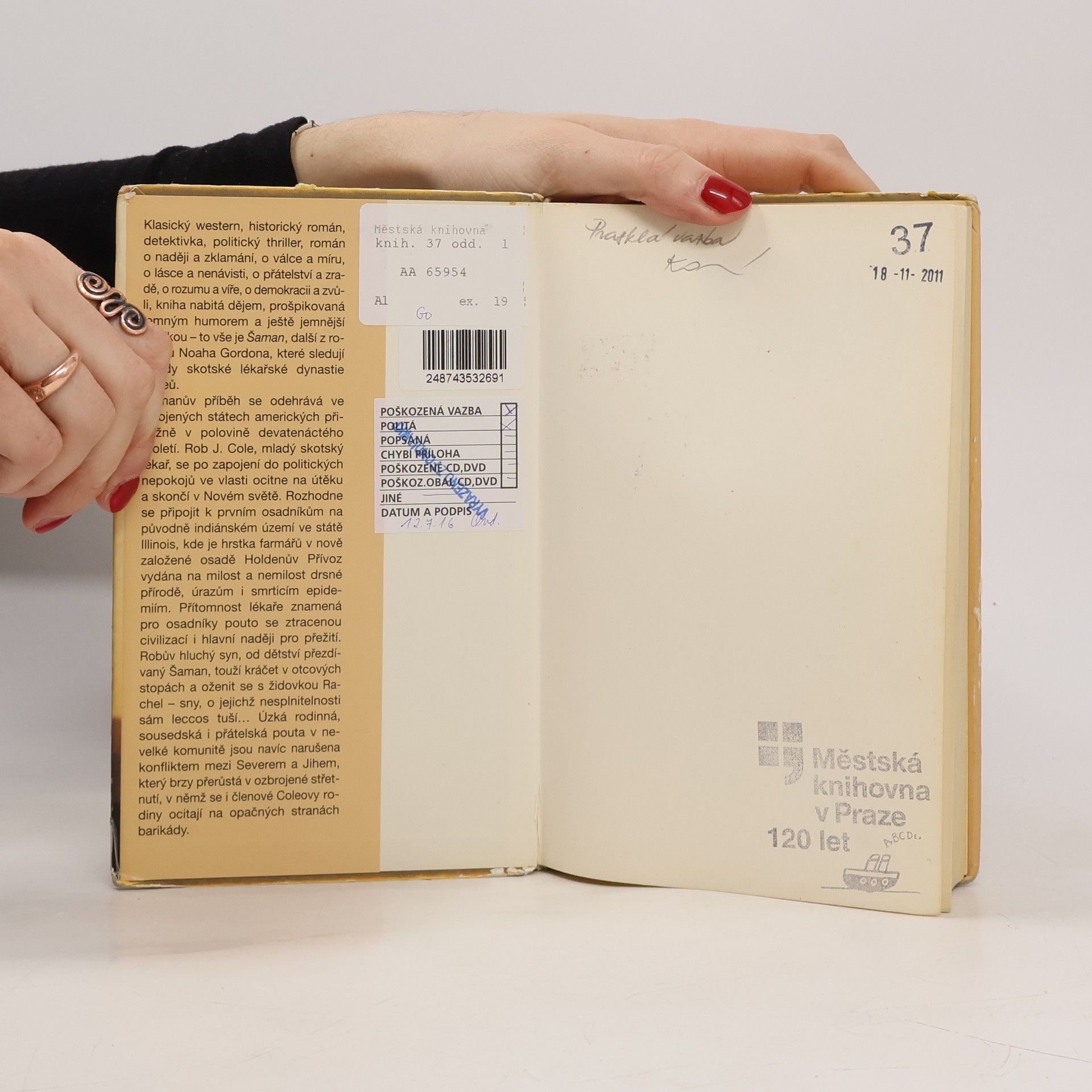 Western, historický román, detektivka, politický thriller... kniha nabitá dějem, jemným humorem a ještě jemnější erotikou - to vše je Šaman. I tento Gordonův román odehrávající se v USA v pol. 19. století, sleduje osudy skotské lékařské dynastie Coleů. Mladý lékař Rob J. Cole se po zapojení do politických nepokojů ve vlasti ocitne na útěku a připojí se k prvním osadníkům na původně indiánském území. Pro farmáře znamená přítomnost lékaře naději na přežití. Robův syn, přezdívaný Šaman, touží jít v otcových stopách…