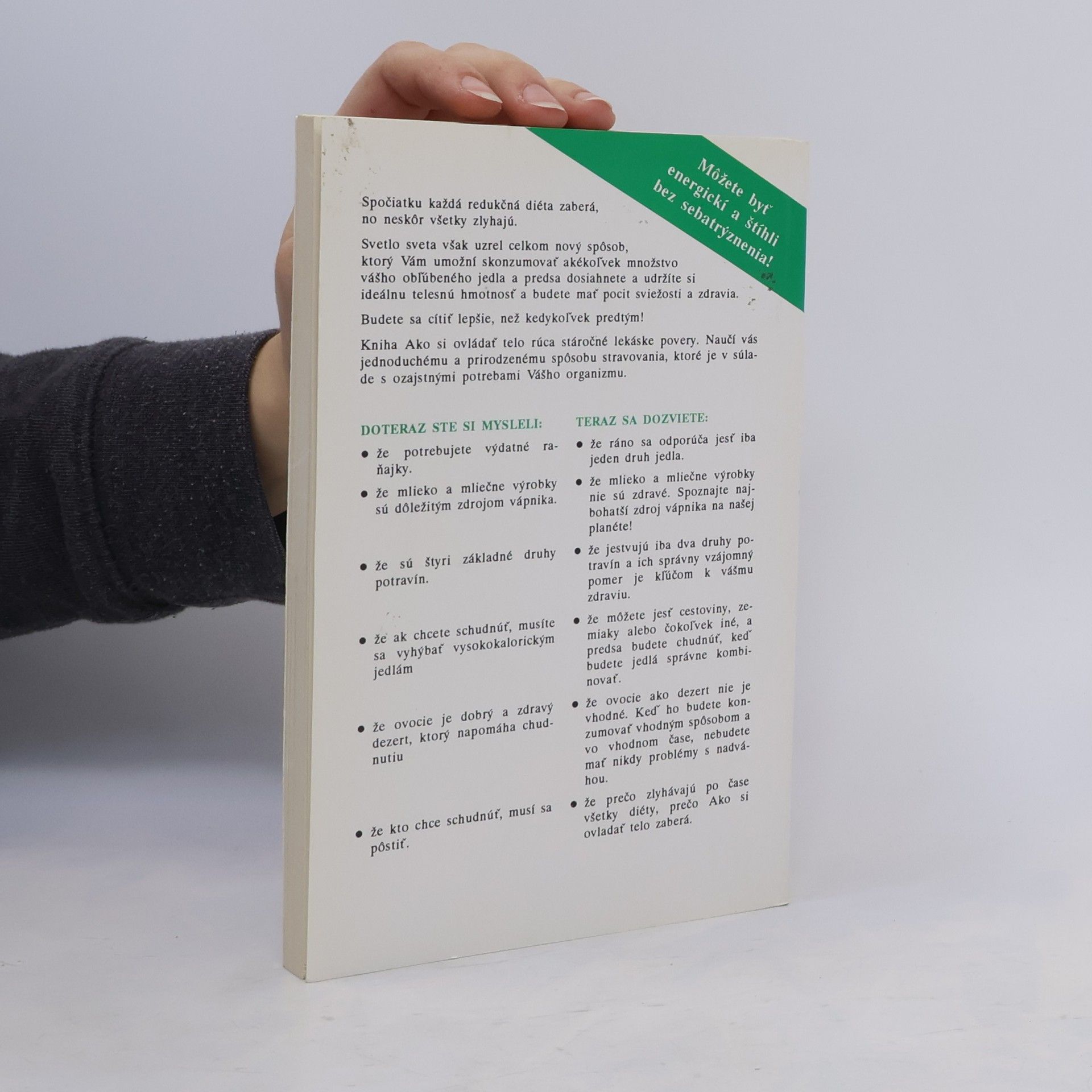 Spočiatku každá redukčná diéta zaberá, no neskôr všetky zlyhajú. Svetlo sveta však uzrel celkom nový spôsob, ktorý Vám umožní skonzumovať akékoľvek množstvo vášho obľúbeného jedla a predsa dosiahnete a udržíte si ideálnu telesnú hmotnosť a budete mať pocit sviežosti a zdravia. Budete sa cítiť lepšie, než kedykoľvek predtým! Kniha Ako si ovládať telo rúca stáročné lekárske povery. Naučí vás jednoduchému a prirodzenému spôsobu stravovania, ktoré je v súlade s ozajstnými potrebami Vášho organizmu.