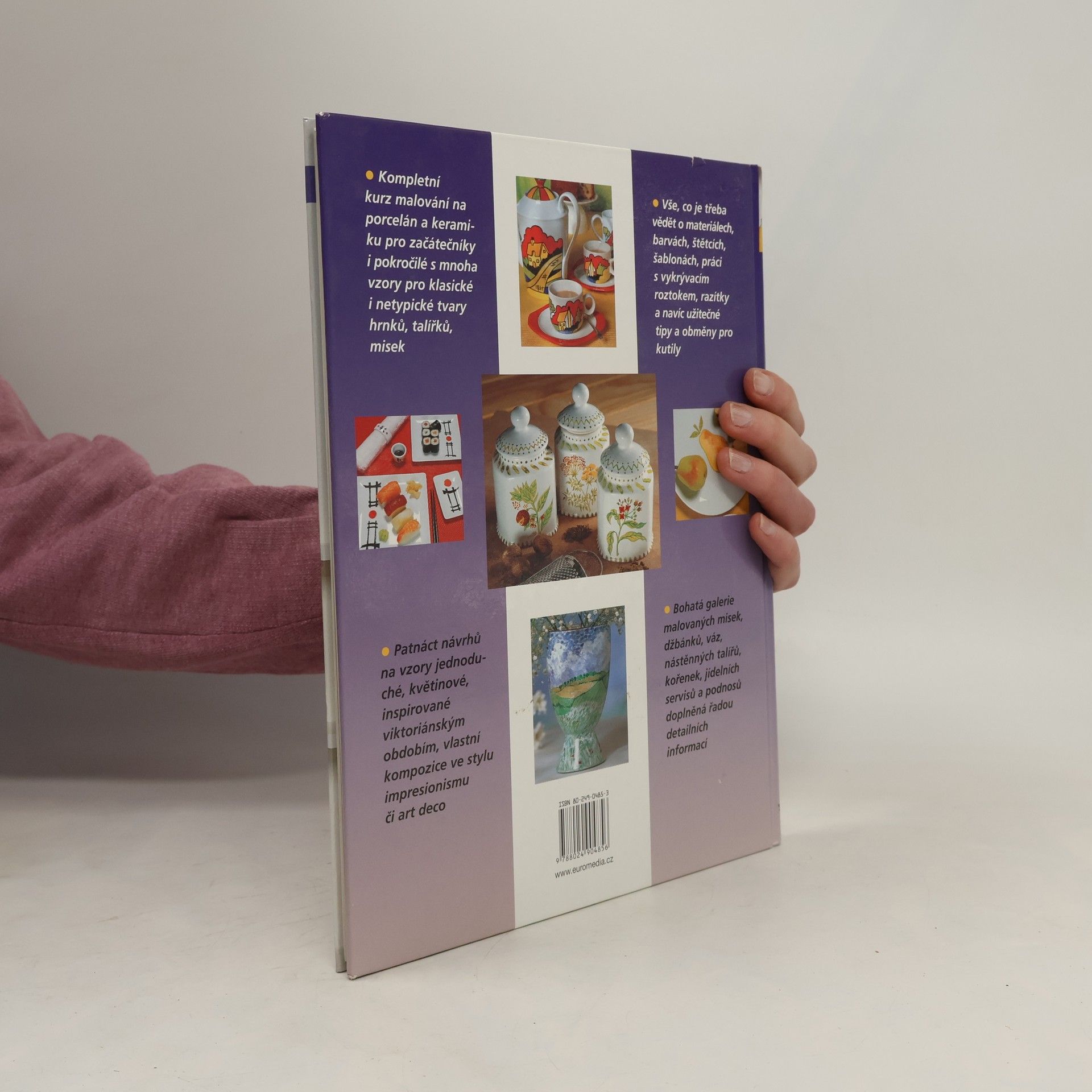 V knize najdete kompletní kurz malování na porcelán a keramiku pro začátečníky i pokročilé s mnoha vzory pro klasické i netypické tvary hrnků, talířků, džbánků, váz, misek, kořenek, podnosů - a to pro všechny úrovně dovednosti, včetně snadných nápadů pro začátečníky. Dostanete veškeré informace o materiálech, barvách, štětcích, šablonách, práci s vykrývacím roztokem, razítky a navíc užitečné tipy a obměny pro kutily. Inspirovat vás bude 15 originálních nápadů na zdobení váz, talířů a misek, čajových souprav a kachlíků - vzory jednoduché, květinové, inspirované viktoriánským obdobím, vlastní kompozice ve stylu impresionismu či art deco.
