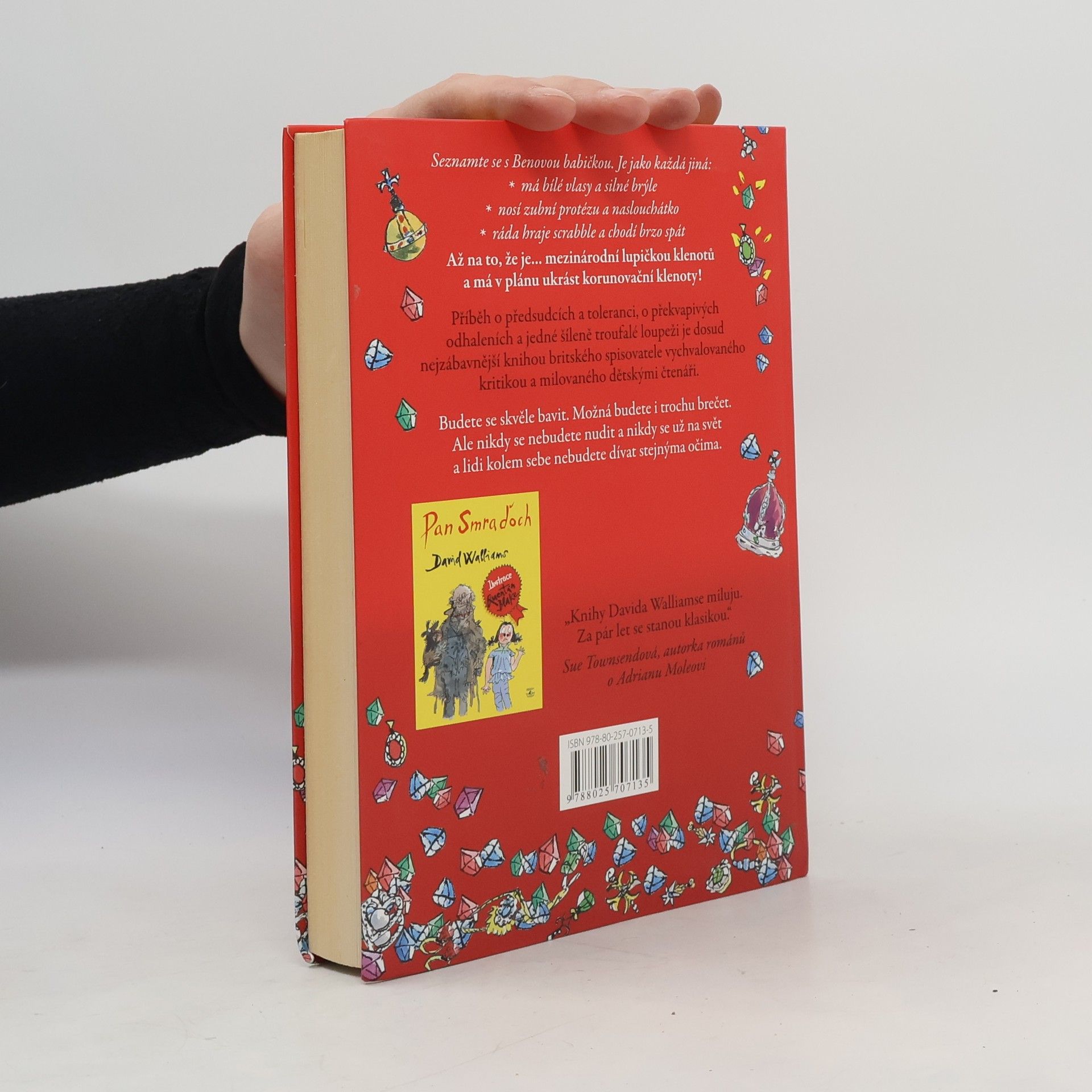 Britského autora dětských knih Davida Walliamse označují kritici za nového Roalda Dahla. Jeho vypravěčsky brilantní příběhy s překvapivou pointou a černým humorem dávají tomuto označení za pravdu. Jako první se k českému čtenáři dostává Babička drsňačka. Vypráví se v ní příběh o předsudcích a toleranci, o překvapivých odhaleních a jedné šíleně troufalé loupeži. Ben je k smrti otrávený, zase má strávit víkend u babičky: "Vždyť je s ní děsná nuda! Se všema starýma je nuda. Telka jí nefunguje, pořád chce jenom hrát scrabble a smrdí kapustou!" Pěkně tvrdý odsudek z úst nezletilce, jenže to ještě Ben netuší dvě věci: 1) Jeho babička kdysi byla proslulou lupičkou šperků. 2) Celý život kula plán, jak ukradnout korunovační klenoty, a teď potřebuje Benovu pomoc!