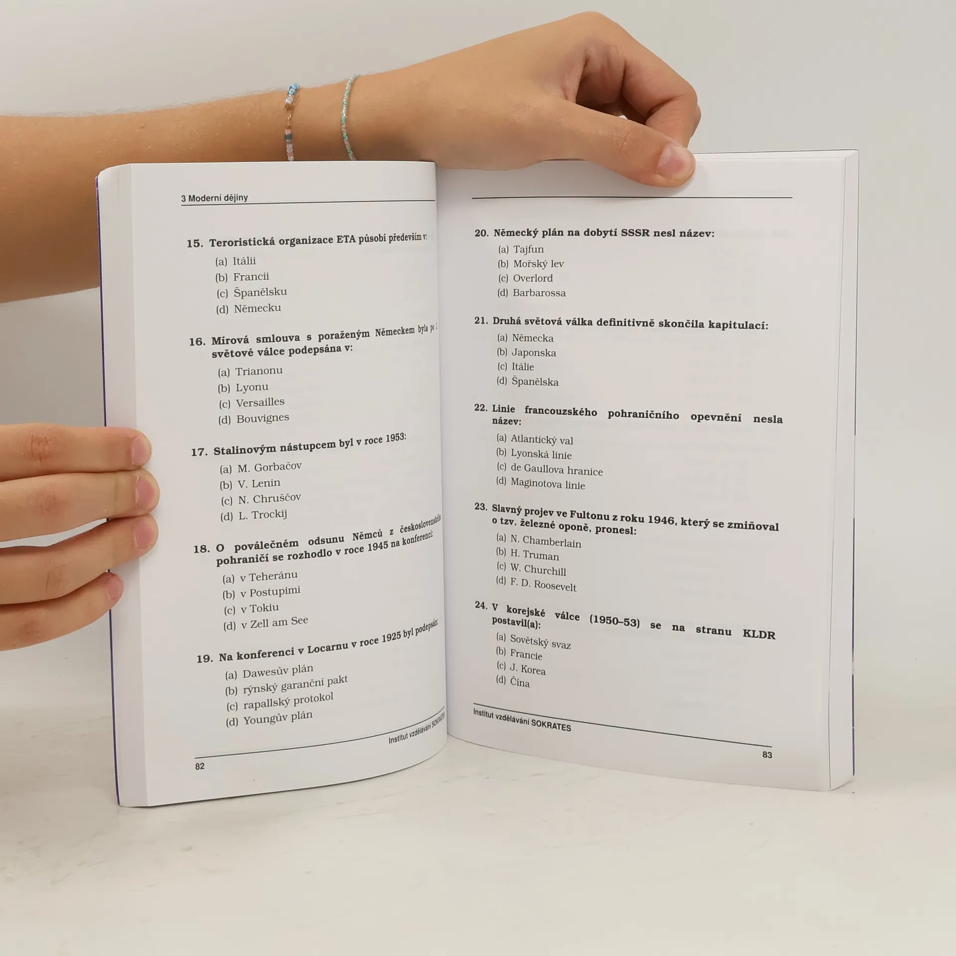 Kniha je jedinečnou pomůckou určenou uchazečům o studium na fakultách sociálních studií (věd), humanitních studií, právnické fakultě avšak i na fakulty filozofické a pedagogické. Formou více jak 1000 testových otázek z přijímacích zkoušek ukazuje potřebnou hloubku přípravy na uvedené vysoké školy. Zároveň obsahuje také kompletní přijímací test, ve kterém si uchazeč o studium ověří své schopnosti. Určeno zejména k přípravě na Fakultu sociálních studií MU v Brně, Fakultu humanitních studií UK v Praze, Fakultu humanitních studií UTB ve Zlíně, Právnickou fakultu UK v Praze, Právnickou fakultu UP v Olomouci, Právnickou fakultu ZČU v Plzni, Přírodovědně-humanitní a pedagogickou fakultu Technické univerzity v Liberci apod. Publikaci je výhodné zkombinovat s přípravou na testy studijních předpokladů a z logiky - viz knihy Testy obecných studijních předpokladů a základy logiky (1. a 2. díl).