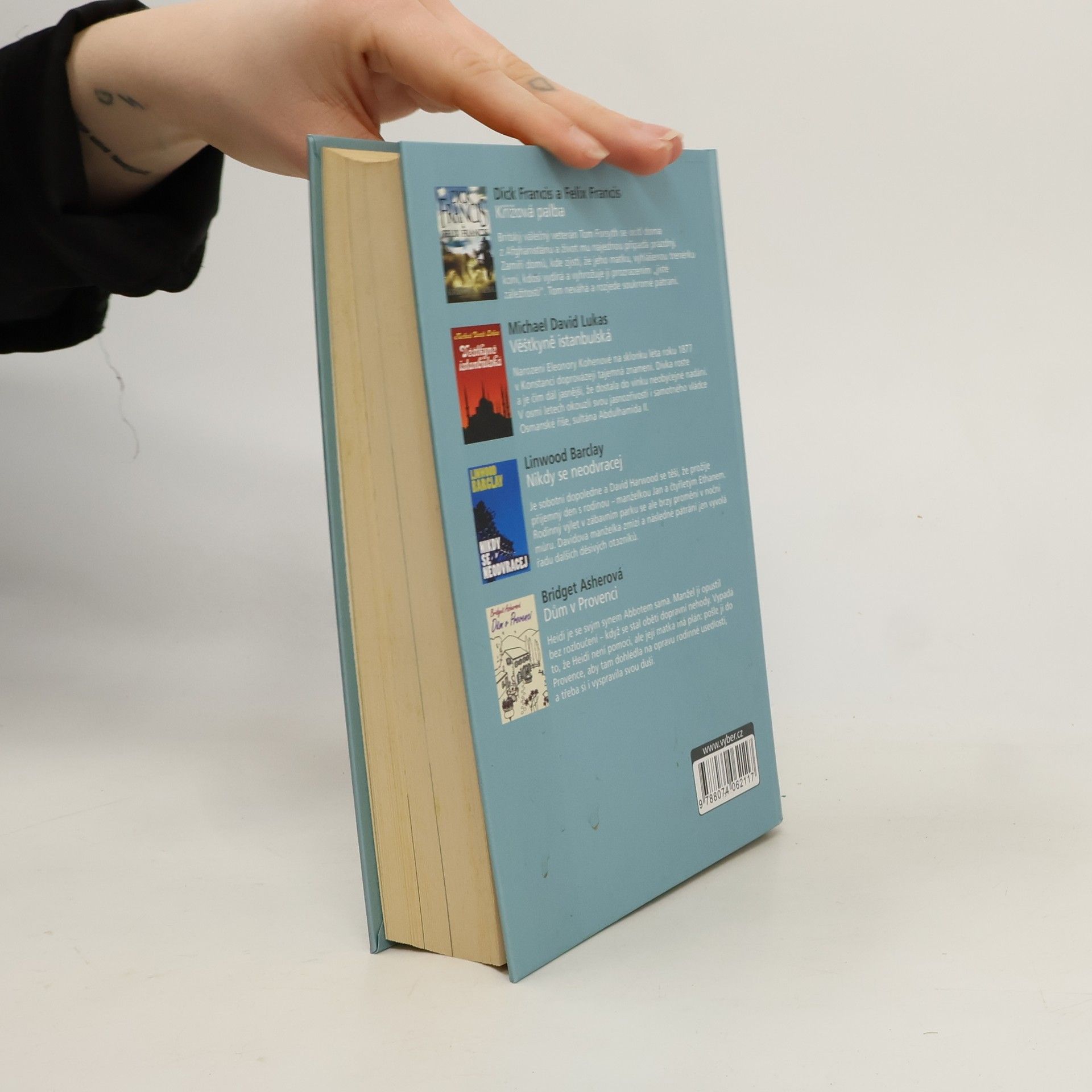Svazek obsahuje zkrácené verze čtyř úspěšných románů oddychových žánrů od současných angloamerických autorů. Jednotlivé tituly jsou doplněny stručnými informacemi o jejich tvůrcích. Dick Francis a Felix Francis: Křížová palba Britský válečný veterán Tom Forsyth se ocitl doma z Afghánistánu a život mu najednou připadá prázdný. Zamíří domů, kde zjistí, že jeho matku, vyhlášenou trenérku koní, kdosi vydírá a vyhrožuje jí prozrazením „jisté záležitosti“. Tom neváhá a rozjede soukromé pátrání. Michael David Lukas: Věštkyně istanbulská Narození Eleonory Kohenové na sklonku léta roku 1877 v Konstanci doprovázejí tajemná znamení. Dívka roste a je čím dál jasnější, že dostala do vínku neobyčejné nadání. V osmi letech okouzlí svou jasnozřivostí i samotného vládce Osmanské říše, sultána Abdulhamida II. Linwood Barclay: Nikdy se neodvracej Je sobotní dopoledne a David Harwood se těší, že prožije příjemný den s rodinou – manželkou Jan a čtyřletým Ethanem. Rodinný výlet v zábavním parku se ale brzy promění v noční můru. Davidova manželka zmizí a následné pátrání jen vyvolá řadu dalších děsivých otazníků. Bridget Asherová: Dům v Provenci Heidi je se svým synem Abbotem sama. Manžel ji opustil bez rozloučení – když se stal obětí dopravní nehody. Vypadá to, že Heidi není pomoci, ale její matka má plán: pošle ji do Provence, aby tam dohlédla na opravu rodinné usedlosti, a třeba si i vyspravila svou duši.