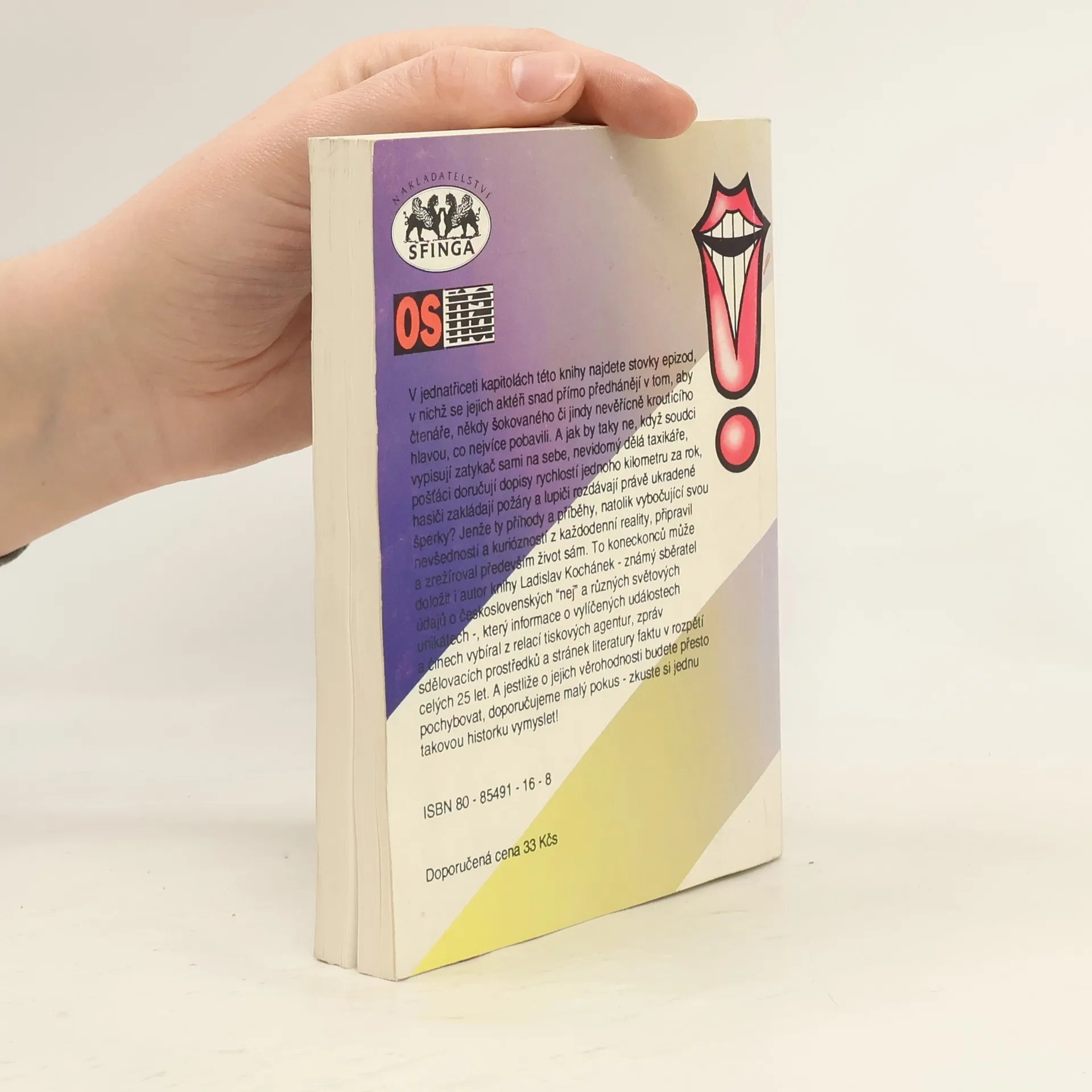 V jednatřiceti kapitolách této knihy najdete stovky epizod, v nichž se jejich aktéři snad přímo předhánějí v tom, aby čtenáře, někdy šokovaného či jindy nevěřícně kroutícího hlavou, co nejvíce pobavili. A jak by taky ne, když soudci vypisují zatykač sami na sebe, nevidomý dělá taxikáře, pošťáci doručují dopisy rychlostí jednoho kilometru za rok, hasiči zakládají požáry a lupiči rozdávají právě ukradené šperky? Jenže ty příhody a příběhy, natolik vybočující svou nevšedností a kuriózností z každodenní reality, připravil a zrežíroval především život sám. To koneckonců může doložit i autor knihy Ladislav Kochánek (známý sběratel o československcýh "nej" a různých světových unikátech), který informace o vylíčených událostech a činech vybíral z relací tiskových agentur, zpráv sdělovacích prostředků a stránek literatury faktu v rozpětí celých 25 let. A jestliže o jejich věrohodnosti budete přesto pochybovat, doporučujeme malý pokus - zkuste si jednu takovou historku vymyslet!