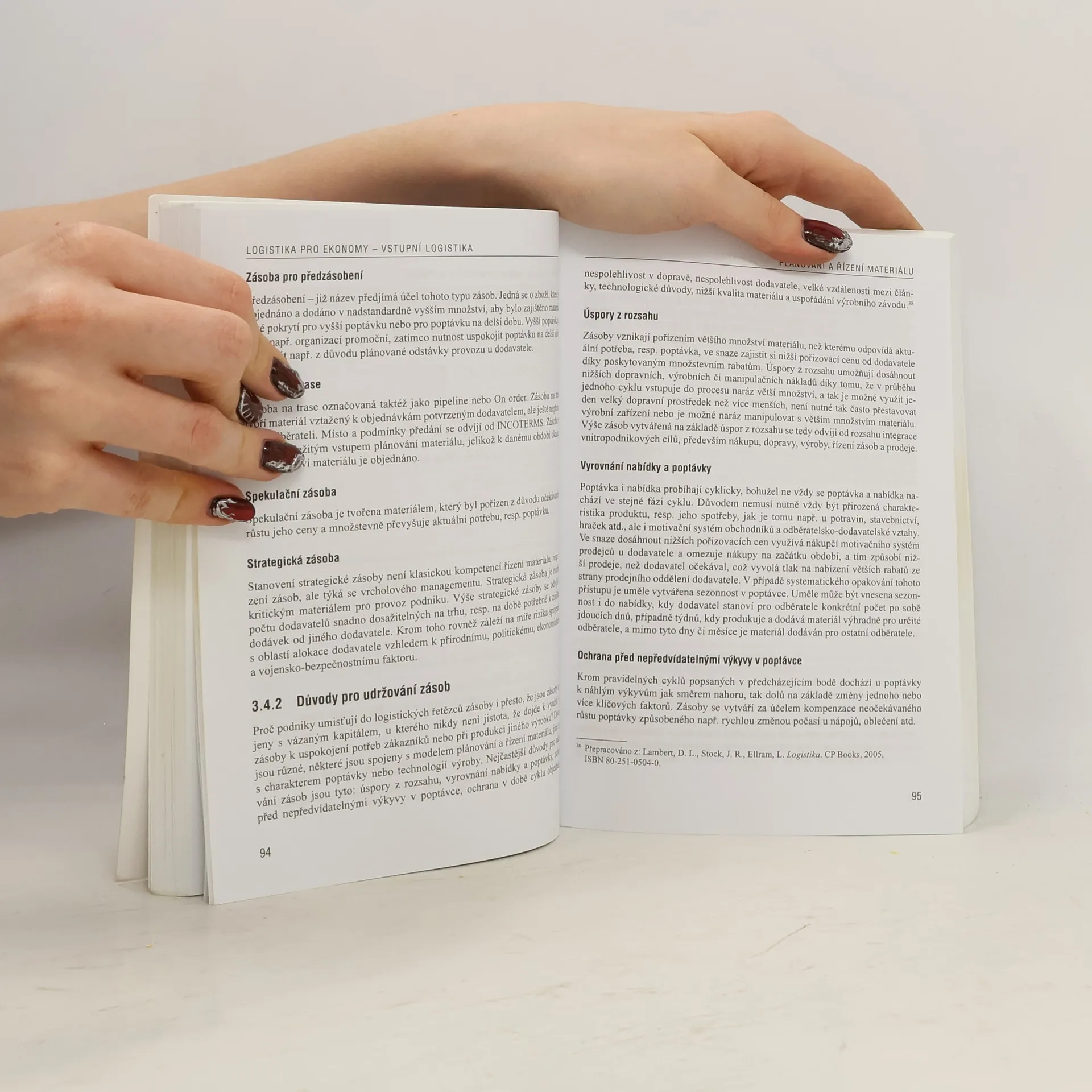 Autoři se v knize zaměřují na proces zajištění optimálního množství materiálu v logistickém řetězci a uvádějí do vztahu strategickou, procesní, technologickou a metodickou stránku spojenou se zajišťováním materiálu. V publikaci jsou komplexně rozpracovány především oblasti předpovídání a plánování poptávky, nákup, plánování a řízení materiálu a rovněž role outsourcingu a konceptu štíhlé logistiky. Hlavní části jsou doplněny praktickým exkurzem z prostředí dodavatelského řetězce v automobilovém průmyslu. Do přílohy jsou zařazeny problematiky použití automatické identifikace pro přesný monitoring materiálového toku a volby vhodného přepravního prostředku pro zboží. Publikace je určena pro čtenáře, kteří se chtějí detailně seznámit se způsoby, jak dosáhnout požadovanou disponibilitu materiálu v podniku a jeho logistickém řetězci ve všech relevantních souvislostech.