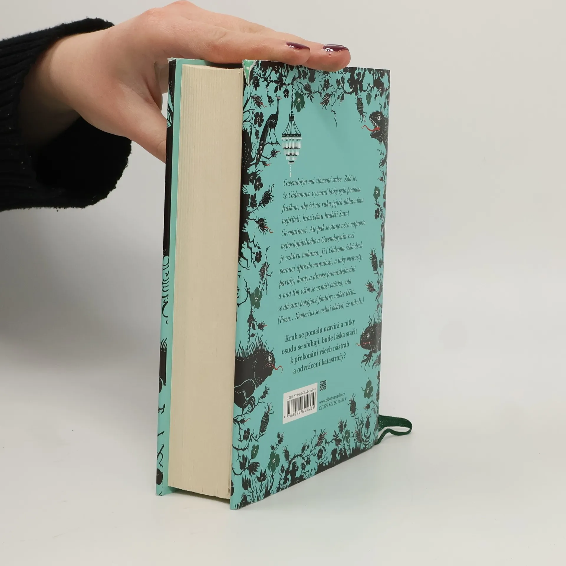 Vyvrcholení časocestovací trilogie! Xemerius je ještě lepší, než byste čekali! Gwendolyn má zlomené srdce. Zdá se, že Gideonovo vyznání lásky bylo pouhou fraškou, aby šel na ruku jejich úhlavnímu nepříteli, hrozivému hraběti Saint Germainovi. Ale pak se stane něco naprosto nepochopitelného a Gwennin svět je vzhůru nohama. Ji i Gideona čeká dech beroucí úprk do minulosti, a taky menuety, paruky, kordy a divoké pronásledování a nad tím vším se vznáší otázka, zda se dá stav pokojové fontány vůbec léčit…