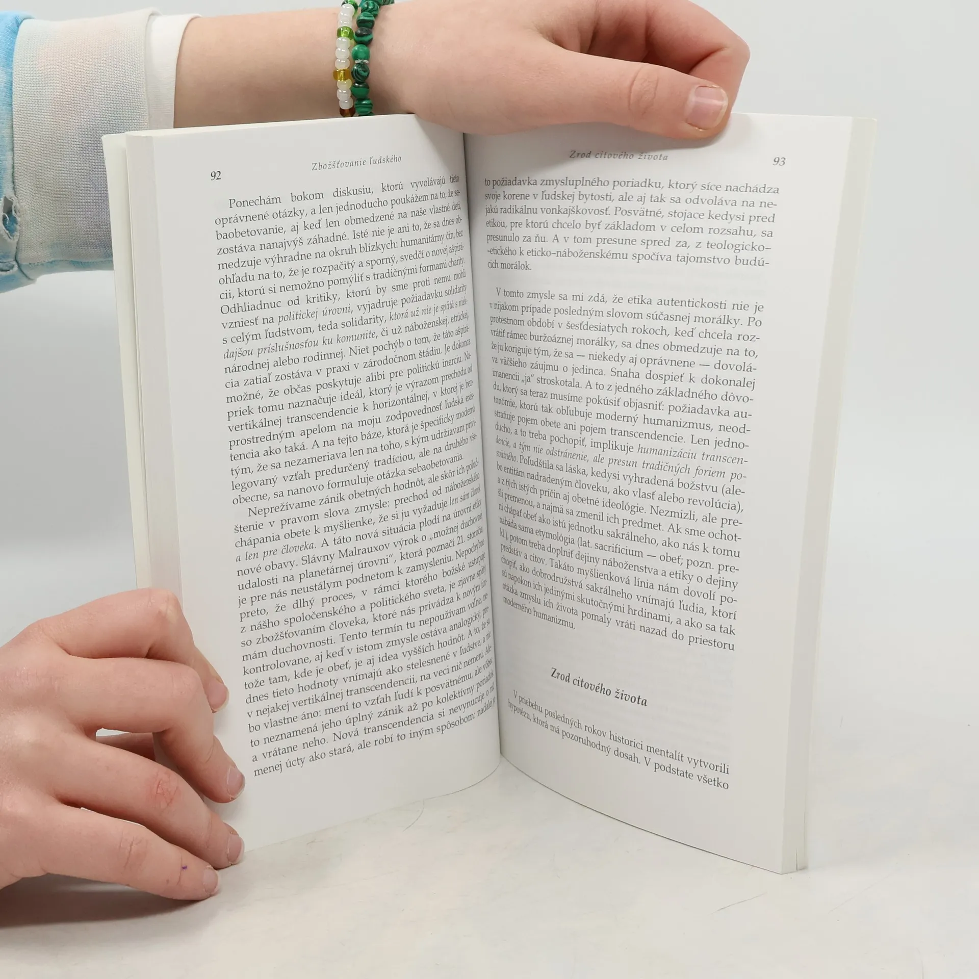 Esej o nové humanistické etice v dnešní společnosti, o etice, která odpovídá hledání smyslu a svědčí o tom, že člověk 21. století cítí potřebu náboženství, potřebu bohů bez Boha. Tím spíš, že velké kolektivní utopie minulého století se zřítily a žádný smysluplný projekt je nenahradil.