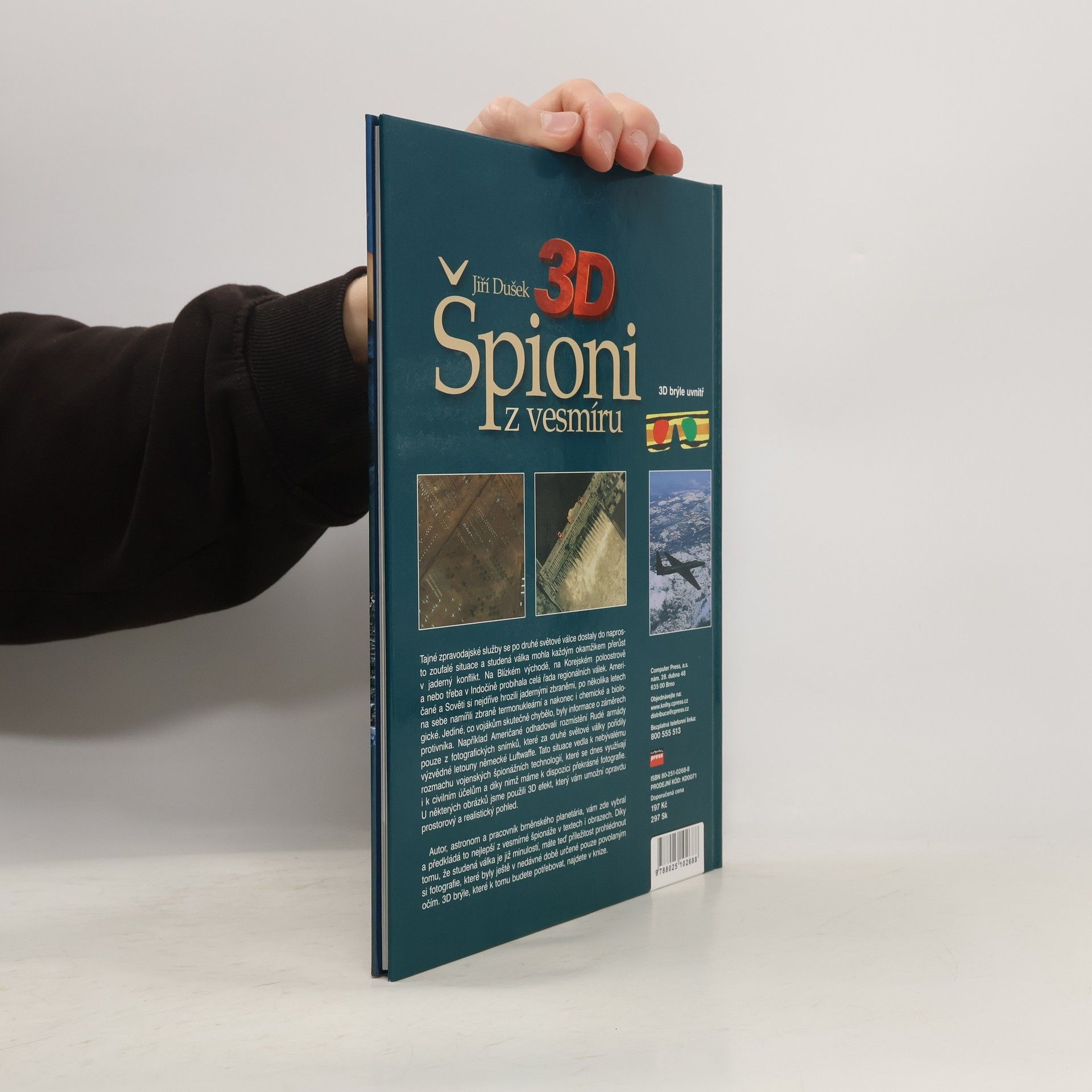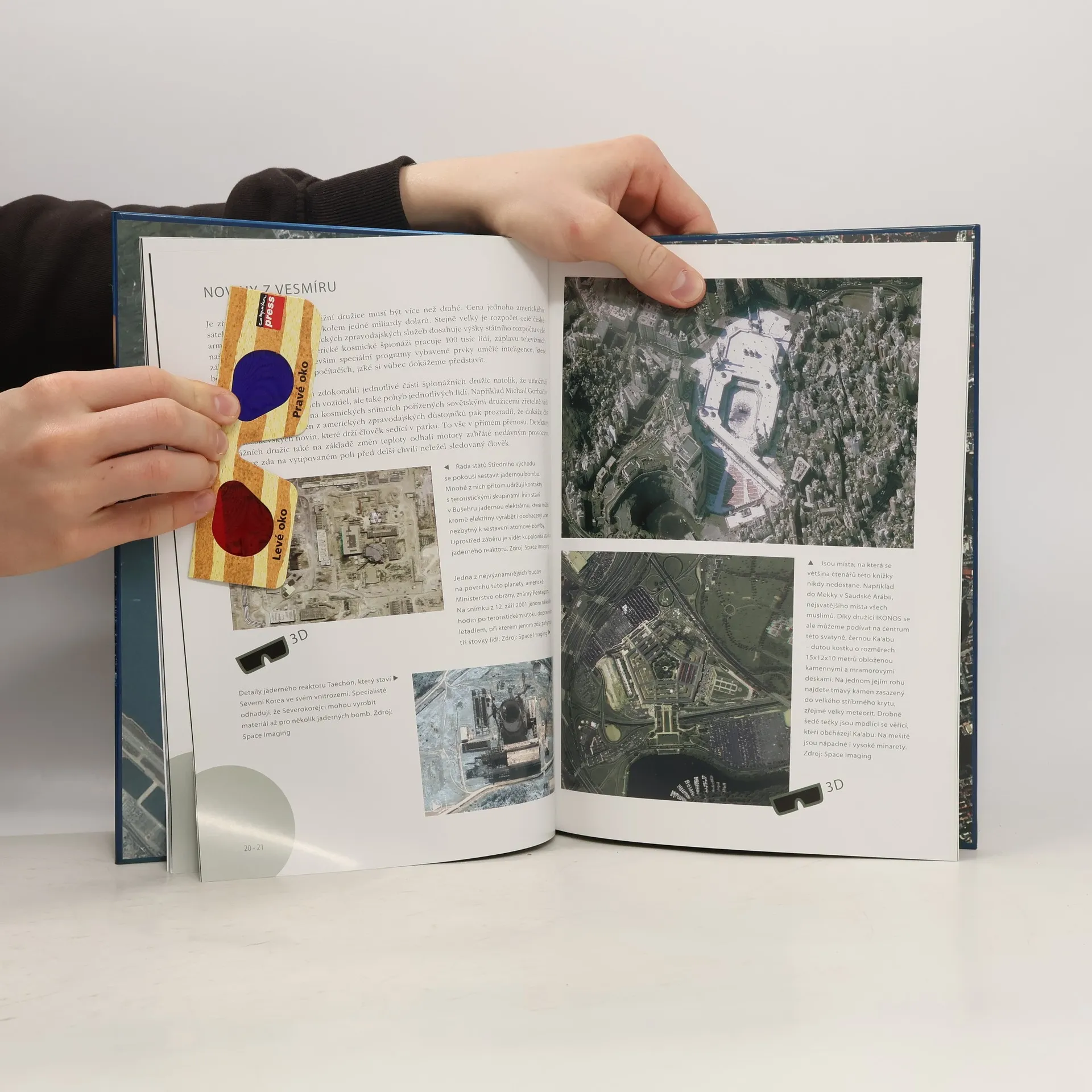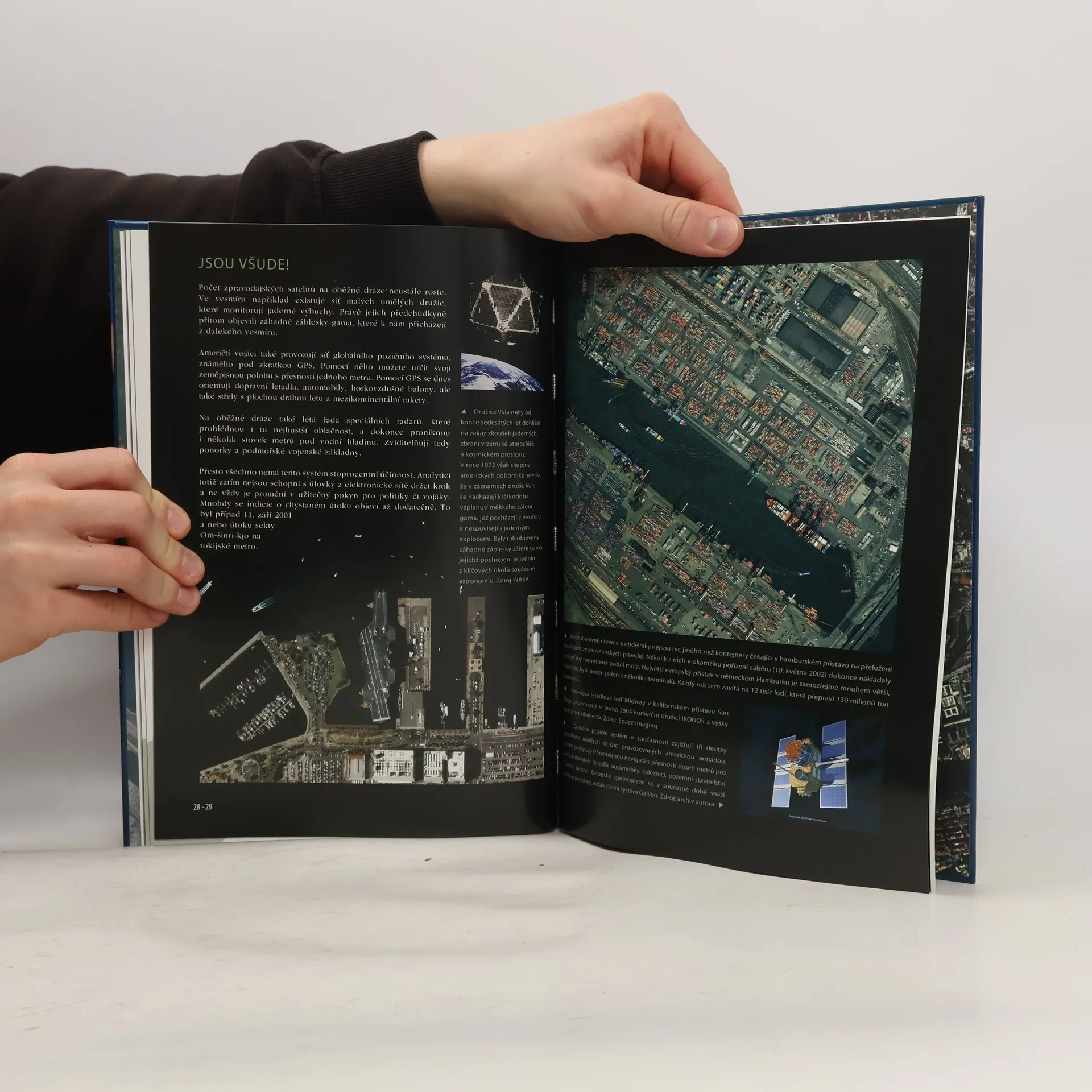 Stručná historie špionáží a techniky využívané k těmto účelům začíná v roce 1956 americkým špionážním letounem U-2. Následoval rychlý rozvoj špionážních družic v USA i Rusku. Jedna kapitola je věnovaná i elektronické špionáži - např. mobil, který nepřetržitě určuje polohu svého majitele, Internet... Texty jsou doplněny mnoha fotografiemi pořízenými právě vesmírnými družicemi. Některé jsou upraveny do 3D podoby, pro jejich prohlížení jsou přiloženy speciální brýle.