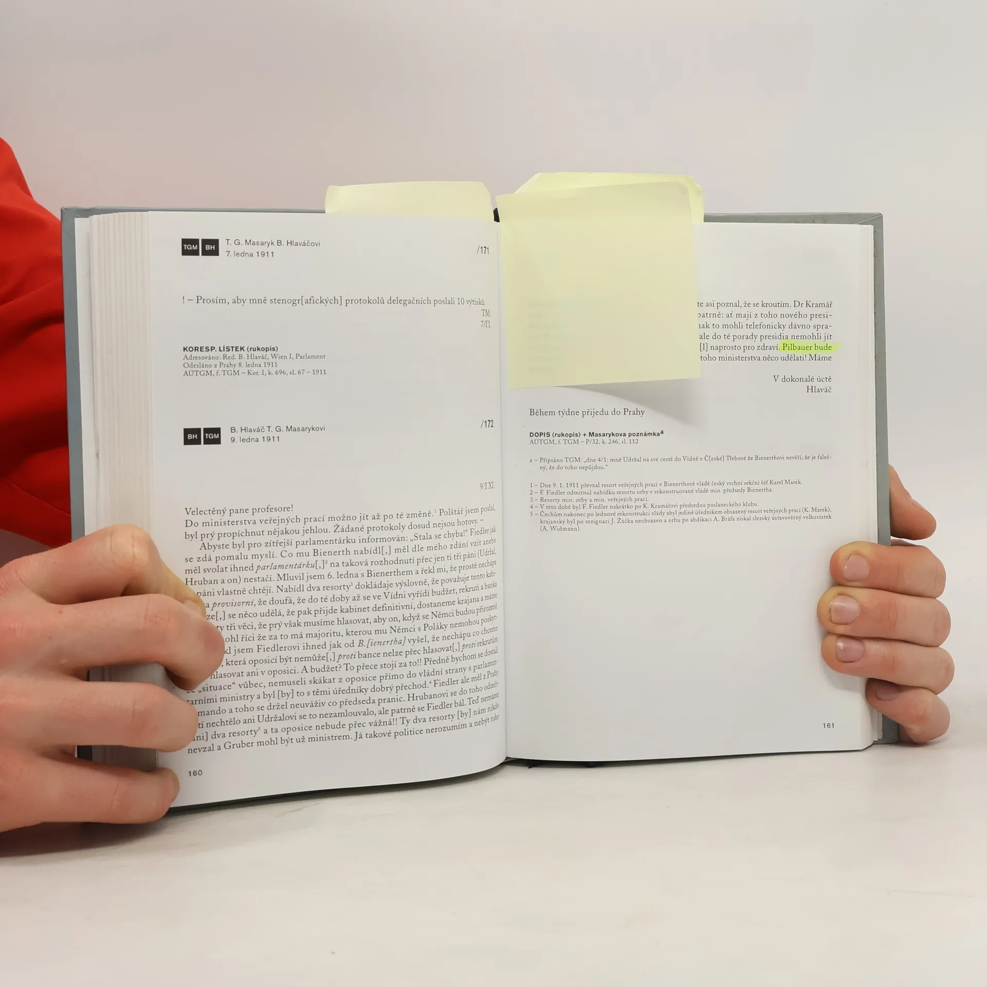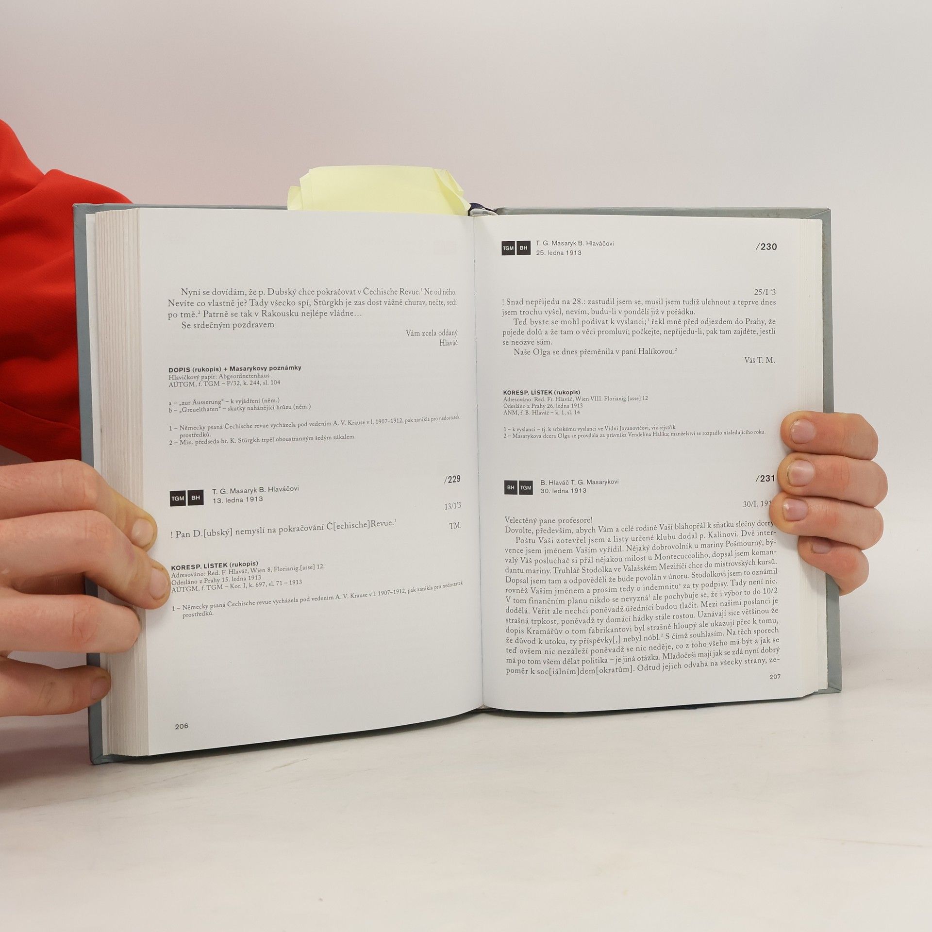 Korespondence TGM s parlamentním zpravodajem Bedřichem Hlaváčem přináší dokumenty především k letům 1900–1914. Jedná se o edici V. Doubka a M. Kučery, která je opatřena poznámkovým aparátem a biografickou studií. 1. svazek ediční řady Korespondence TGM.