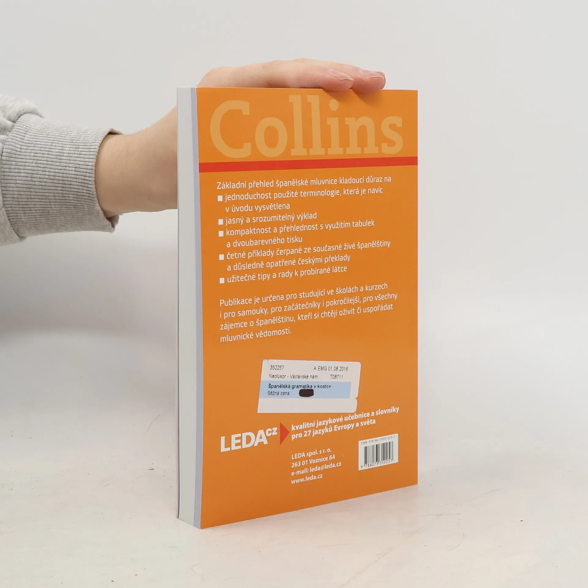 Základní přehled španělské mluvnice kladoucí důraz na jednoduchost použité terminologie, která je navíc v úvodu vysvětlena, jasný, srozumitelný výklad a přehlednost, jíž napomáhá využití tabulek a dvoubarevný tisk. Výklad provázejí četné názorné příklady čerpané ze současné živé španělštiny a důsledně opatřené českými překlady. U jednotlivých gramatických jevů jsou uváděny tipy a praktické rady, které napomáhají zapamatování nebo upozorňují na důležité souvislosti. Publikace je určena pro studující ve školách a kursech i pro samouky, a to pro začátečníky i pokročilejší, dále pro všechny zájemce o španělštinu, kteří si chtějí oživit či uspořádat mluvnické vědomosti.