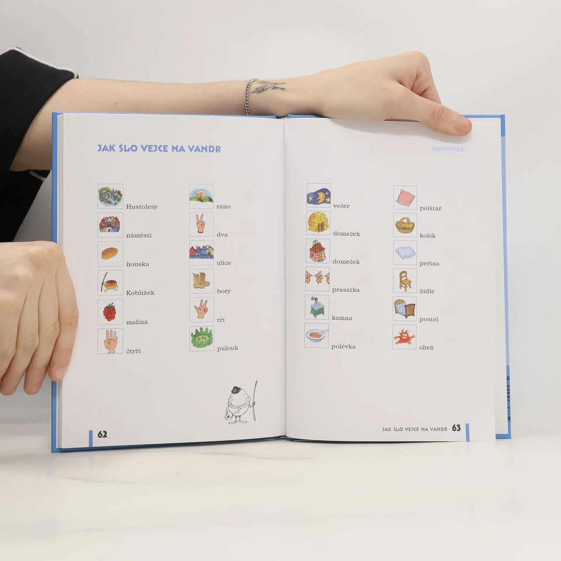 Veselé příběhy, na motivy klasický pohádek, ve kterých jsou desítky slov nahrazeny obrázky. Tzv. „dvojhlasné čtení“, kdy dospělý předčítá a dítě doplňuje malovaná slova, hravou formou rozvíjí slovní zásobu dítěte i schopnost reprodukovat vyprávěný text. V závěru každé kapitoly jsou jednoduché úkoly, které prověří do jaké míry si dítě text zapamatovalo. Na konci knihy je slovníček všech malovaných slov. Jednotlivé pohádky doplňují celostranové barevné ilustrace.