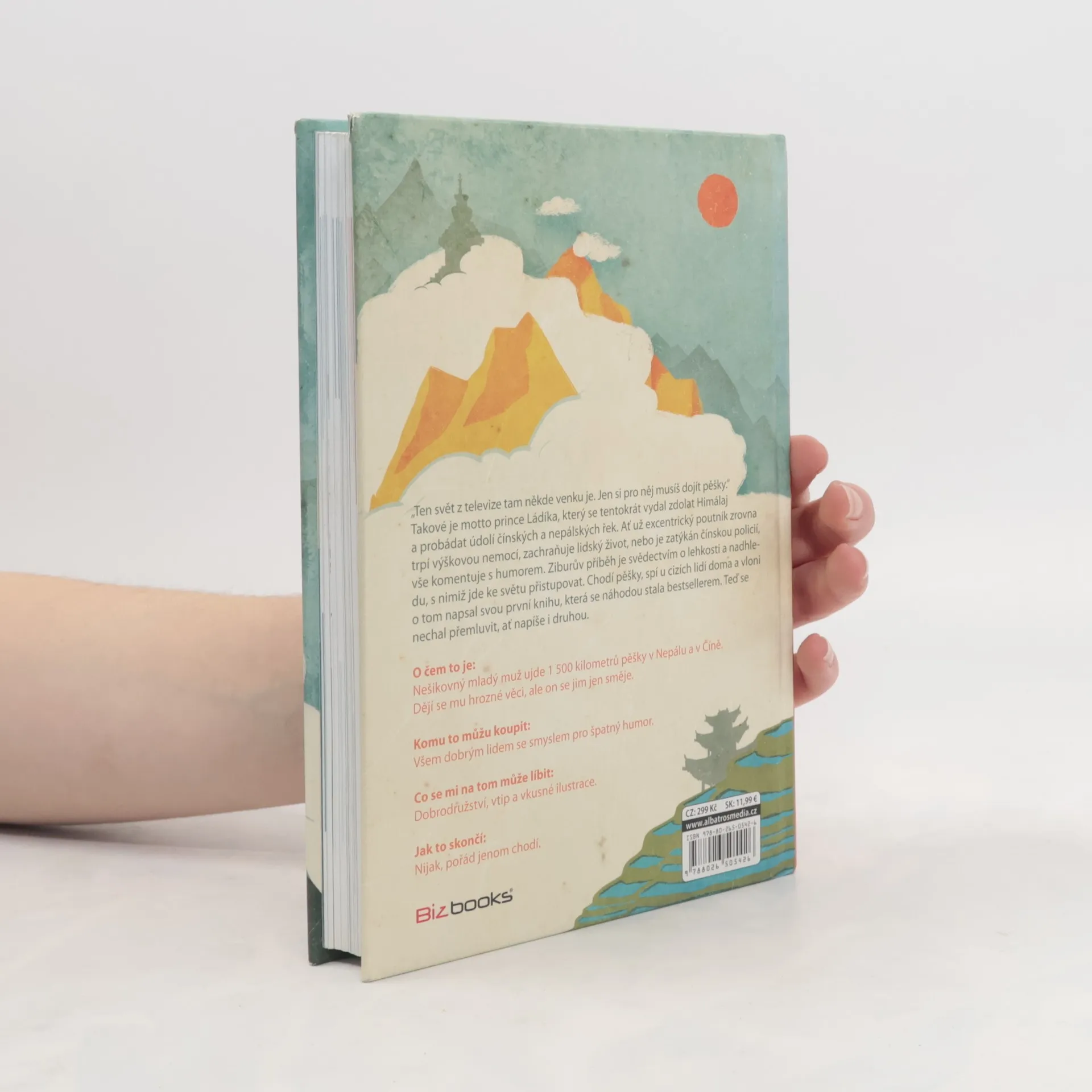Nešikovný mladý muž ujde 1 500 kilometrů pěšky v Nepálu a v Číně. Dějí se mu hrozné věci, ale on se jim jen směje. Když mi byly tři, rozbil jsem si hlavu o bidet. Když mi bylo devět, rozbil jsem si hlavu o kolo, které jsem vedl do kopce. Myslím, že bych vůbec neměl cestovat, protože jsem hrozně nešikovnej. Ale stejně to dělám. Radši ale chodím pěšky, protože tak je to nejbezpečnější. Jednoduše vyrazím na cestu a čekám, co mě tam potká. Tentokrát jsem se vydal do Číny a Nepálu. V kraťasech ze supermarketu a brýlích z drogerie jsem prošel Himálaj i úplně neznámé vesnice v údolích řek. Mnohokrát jsem spal u úplně cizích lidí doma a poznával, jak se jim doopravdy žije a co jim přináší štěstí. Už na cestě jsem o nich začal psát tuto knihu. Času na psaní byl dostatek, protože ujít pěšky 1 500 kilometrů trvá docela dlouho. Jak si teď po sobě knihu čtu, myslím, že se mi povedlo vytvořit pěkné svědectví o jednoduchosti života a půvabu svobody. Jestli se chcete dozvědět něco o památkách a historii, radši si ji ale nekupujte. Kniha je jen o Číňanech, Nepálcích a jejich životě. A taky trochu o mně. Tomu se člověk nevyhne, když jde sám.
