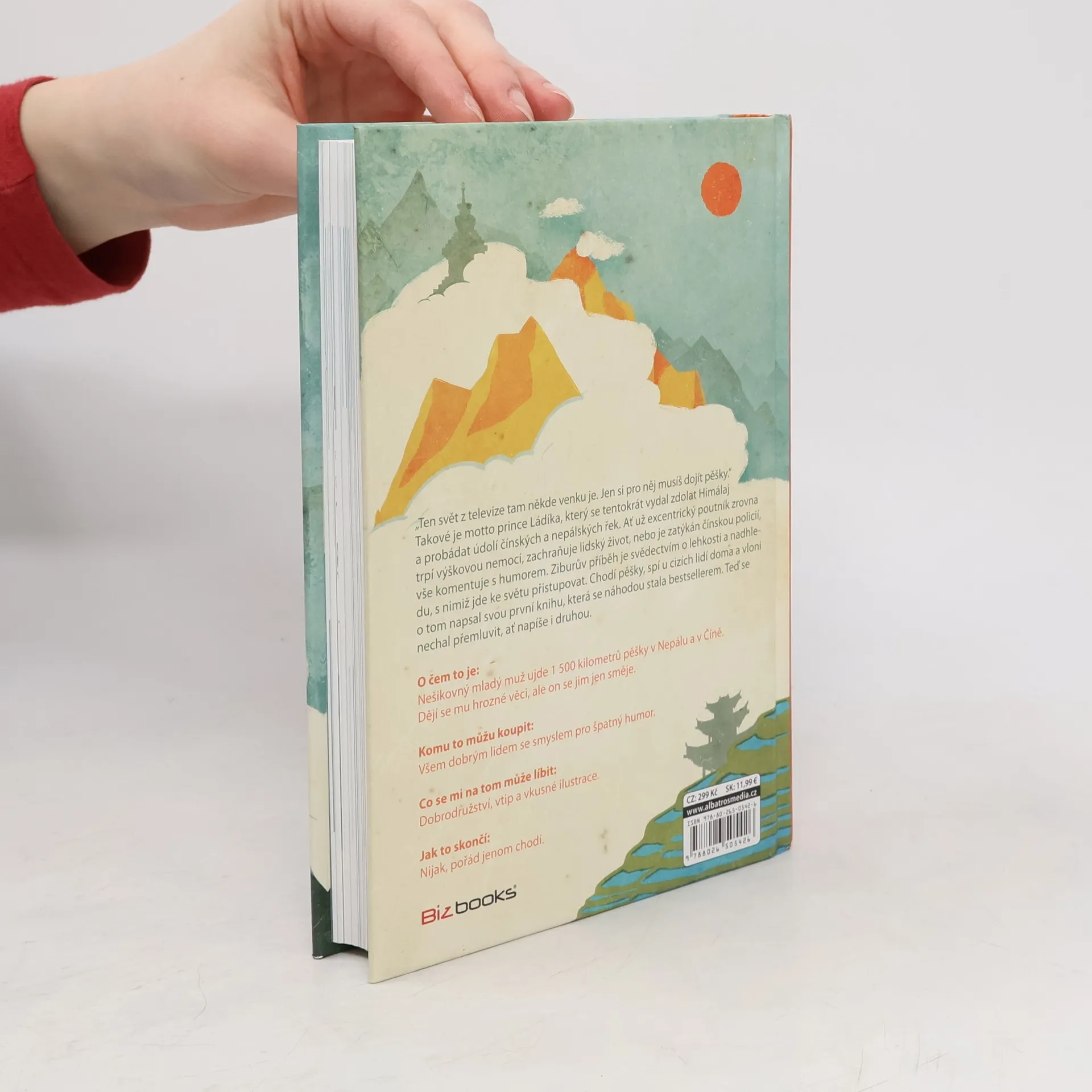 Nešikovný mladý muž ujde 1 500 kilometrů pěšky v Nepálu a v Číně. Dějí se mu hrozné věci, ale on se jim jen směje. Když mi byly tři, rozbil jsem si hlavu o bidet. Když mi bylo devět, rozbil jsem si hlavu o kolo, které jsem vedl do kopce. Myslím, že bych vůbec neměl cestovat, protože jsem hrozně nešikovnej. Ale stejně to dělám. Radši ale chodím pěšky, protože tak je to nejbezpečnější. Jednoduše vyrazím na cestu a čekám, co mě tam potká. Tentokrát jsem se vydal do Číny a Nepálu. V kraťasech ze supermarketu a brýlích z drogerie jsem prošel Himálaj i úplně neznámé vesnice v údolích řek. Mnohokrát jsem spal u úplně cizích lidí doma a poznával, jak se jim doopravdy žije a co jim přináší štěstí. Už na cestě jsem o nich začal psát tuto knihu. Času na psaní byl dostatek, protože ujít pěšky 1 500 kilometrů trvá docela dlouho. Jak si teď po sobě knihu čtu, myslím, že se mi povedlo vytvořit pěkné svědectví o jednoduchosti života a půvabu svobody. Jestli se chcete dozvědět něco o památkách a historii, radši si ji ale nekupujte. Kniha je jen o Číňanech, Nepálcích a jejich životě. A taky trochu o mně. Tomu se člověk nevyhne, když jde sám.