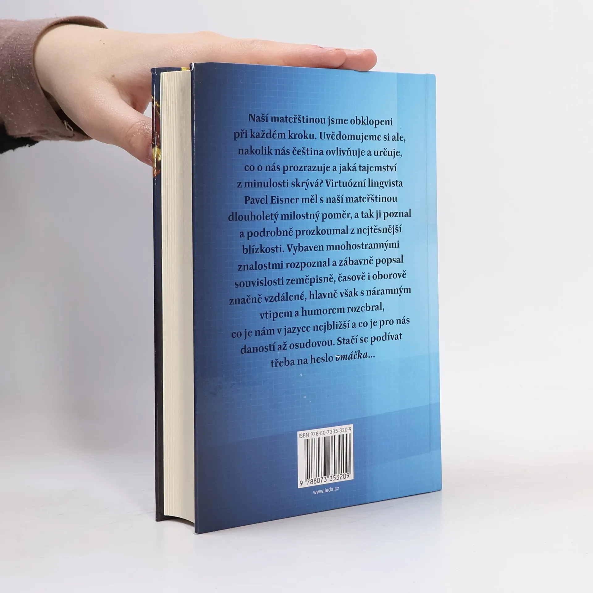 Naší mateřštinou jsme obklopeni při každém kroku. Uvědomujeme si ale, nakolik nás čeština ovlivňuje a určuje, co o nás prozrazuje a jaká tajemství z minulosti skrývá? Virtuózní lingvista Pavel Eisner měl s naší mateřštinou dlouholetý milostný poměr, a tak ji poznal a podrobně prozkoumal z nejtěsnější blízkosti. Vybaven mnohostrannými znalostmi rozpoznal a zábavně popsal souvislosti zeměpisně, časově i oborově značně vzdálené, hlavně však s náramným vtipem a humorem rozebral, co je nám v jazyce nejbližší a co je pro nás daností až osudovou. Stačí se podívat třeba na heslo omáčka…