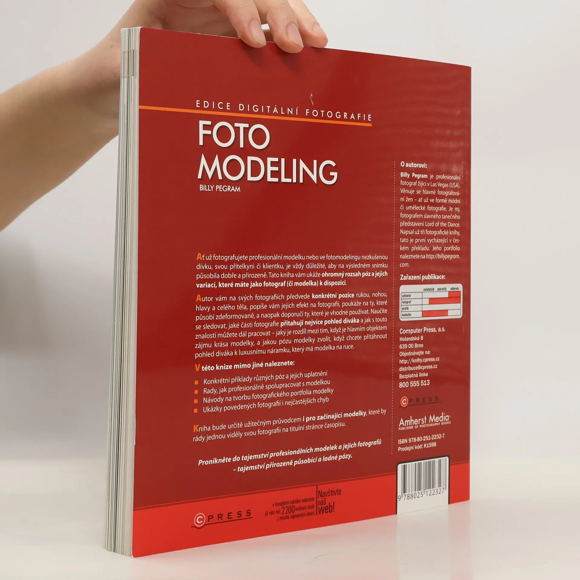 Ať už fotografujete profesionální modelku nebo ve fotomodelingu nezkušenou dívku, svou přítelkyni či klientku, je vždy důležité, aby na výsledném snímku působila dobře a přirozeně. Tato kniha vám ukáže ohromný rozsah póz a jejich variací, které máte jako fotograf (či modelka) k dispozici. Autor vám na svých fotografiích předvede konkrétní pozice rukou, nohou, hlavy a celého těla, popíše vám jejich efekt na fotografii, poukáže na ty, které působí zdeformovaně, a naopak doporučí ty, které je vhodné používat. Naučíte se sledovat, jaké části fotografie přitahují nejvíce pohled diváka a jak s touto znalostí můžete dál pracovat – jaký je rozdíl mezi tím, když je hlavním objektem zájmu krása modelky, a jakou pózu modelky zvolit, když chcete přitáhnout pohled diváka k luxusnímu náramku, který má modelka na ruce.