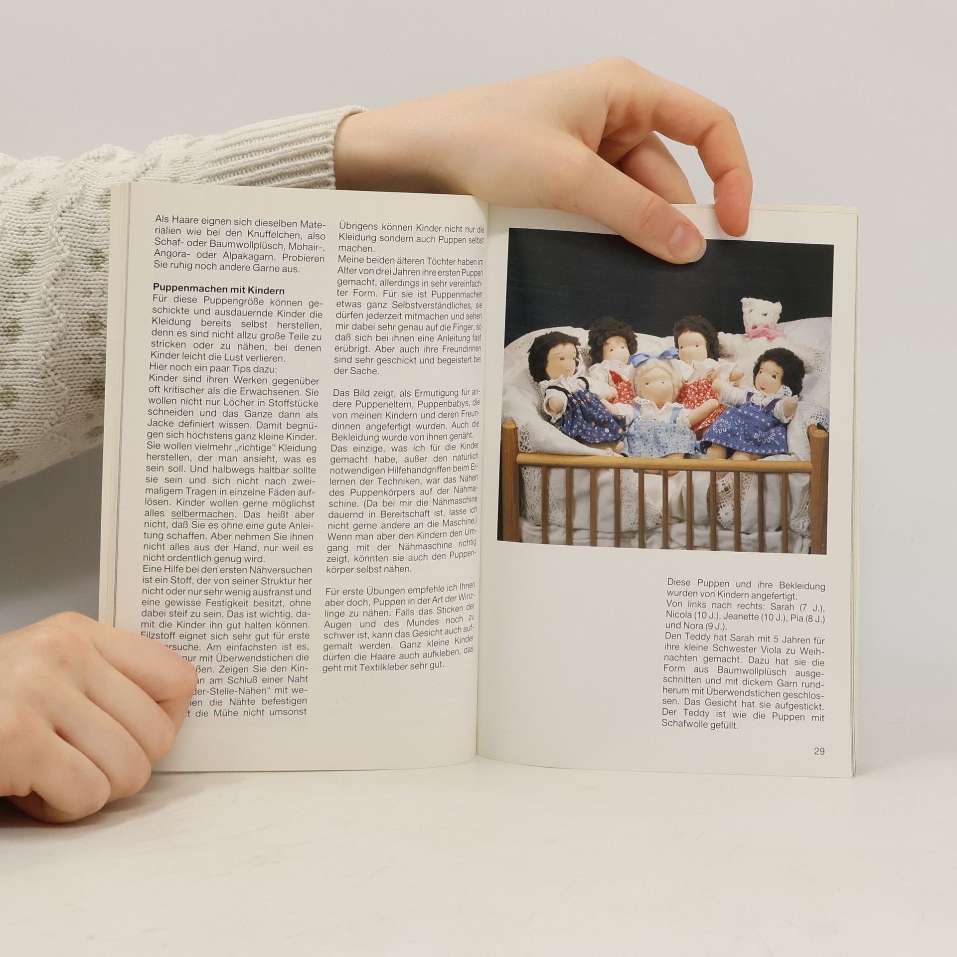 Gut illustrierte Anleitung mit Schnittmuster für die Anfertigung von weichen Babypuppen aus Stoff und ihrer Garderobe.