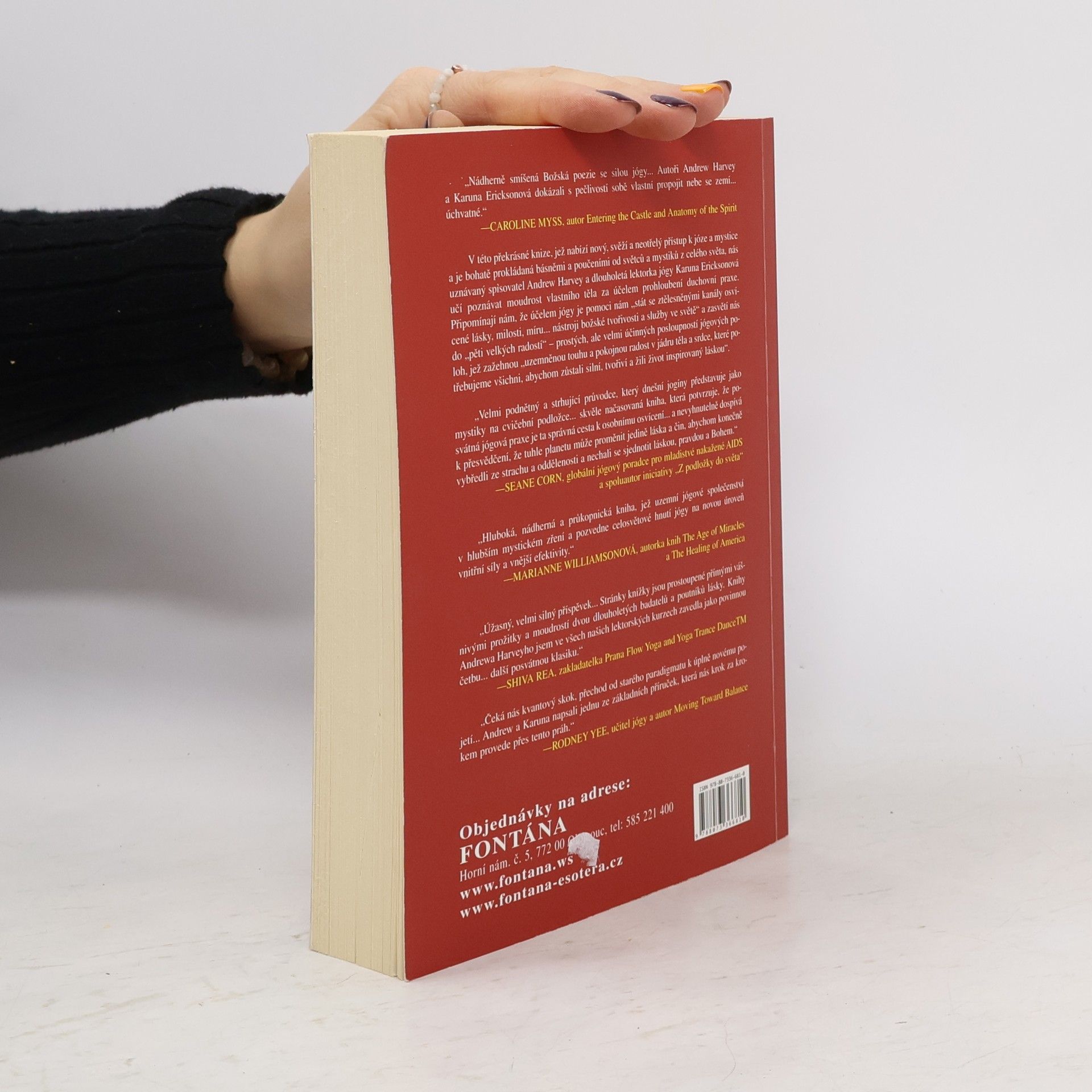 V této překrásné knize, jež nabízí nový, svěží a neotřelý přístup k józe a mystice a je bohatě prokládáná básněmi a poučeními od světců a mystiků z celého světa, nás uznávaný spisovatel Andrew Harvey a dlouholetá lektorka jógy Karuna Ericksonová učí poznávat moudrost vlastního těla za účelem prohloubení duchovní praxe. Připomínají nám, že účelem jógy je pomoci nám "stát se ztělesněnými kanály osvícené lásky , milosti, míru... nástroji božské tvořivosti ve světě" a zasvětí nás do "pěti vekých radostí" - prostých , ale velmi účinných posloupností jógových poloh, jež zažehnou "uzemněnou touhou a pokojnou radost v jádru těla a srdce, které potřebujeme všichni, abychom zůstali silní, tvořiví a žili život inspirovaný láskou".