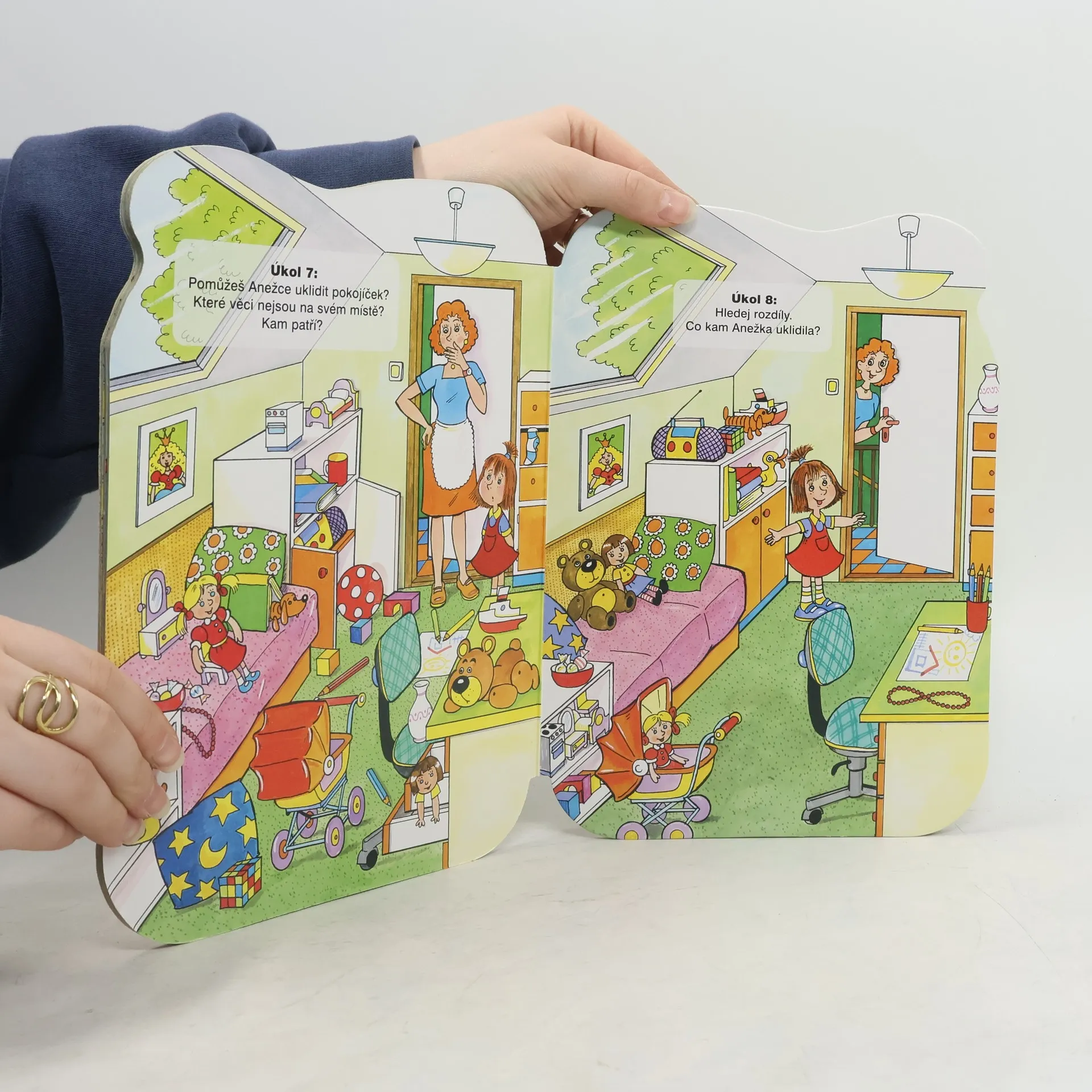 Velké leporelo pro nejmenší se zábavnými úkoly, zaměřenými především na rozvoj logického myšlení a představivosti. Na osmi celostránkových ilustracích se malí čtenáři seznámí s rodinou Broučkových, jejich domečkem i domácími mazlíčky.