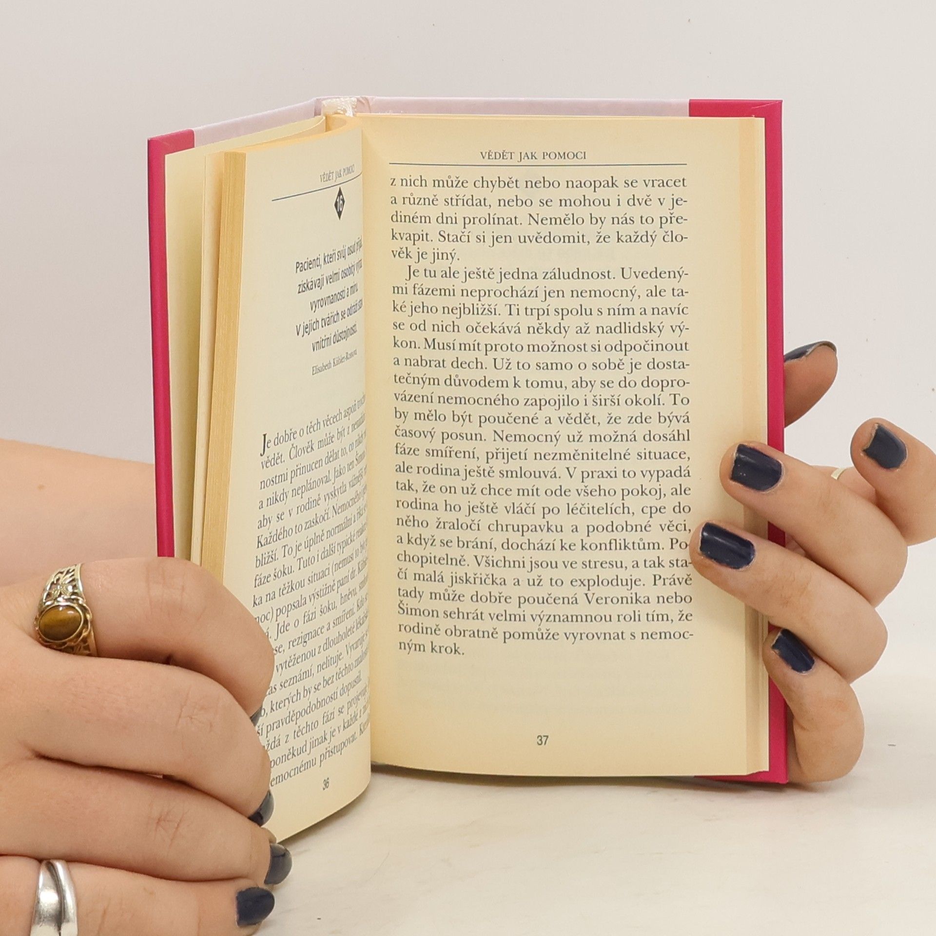 Náročnou životní cestu s nemocí můžeme procházet sami, ale můžeme se také nechat doprovázet. I proto vznikla tato knížka o doprovázení a slovech naděje: „Láska k bližnímu a bratrský soucit je trpícím často potřebnější než všechny léky.“ (F. M. Dostojevskij) S jinými lidmi, v setkáních a rozhovorech můžeme hledat a nacházet nové životní hodnoty.