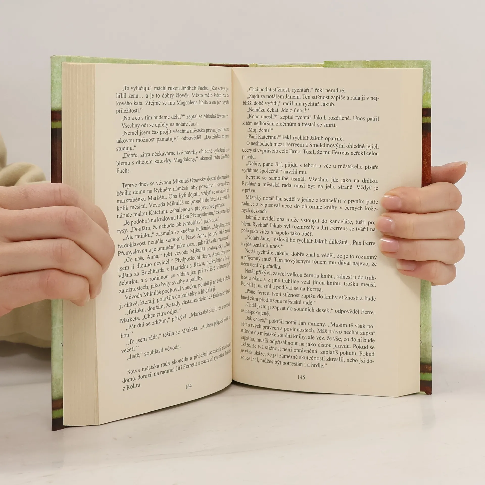 Příběh se odehrává od února do června 1353 a je inspirován událostmi v Brně, přičemž se v něm odrážejí dějiny Čech a Moravy. Po smrti druhé manželky krále Karla IV. se rychle domlouvá nový sňatek. V únoru se narodila dcera Kateřina markraběcímu páru a plánuje se její zasnoubení. Hlavní linií příběhu je vztah manželů Ferreových, zejména soudní proces s Jiřím Ferreem, který se ke své ženě Kateřině chová krutě a psychicky ji trýzní. Jeho chování, které ospravedlňuje městským právem, vyvolává bezradnost mezi přísežnými a městskou radou. Kateřina se nakonec podaří utéct k rodičům, což vyvolá konflikt s Ferreem, který žádá její návrat. Kateřinina matka, spojená s vlivnými rodinami, plánuje, jak Ferrea společensky znemožnit a Kateřinu zachránit během soudního procesu za přítomnosti markraběte. Druhá linie příběhu sleduje brněnského kata, který se potýká s osobními problémy po smrti ženy a péčí o děti, zatímco řeší případ měšťanky odsouzené za vraždu. Zároveň se snaží získat tajemství o skrytém bohatství, které mu svěřil umírající vězeň, a čelí dominikánskému mnichovi, jenž má vlastní zájem o toto bohatství.