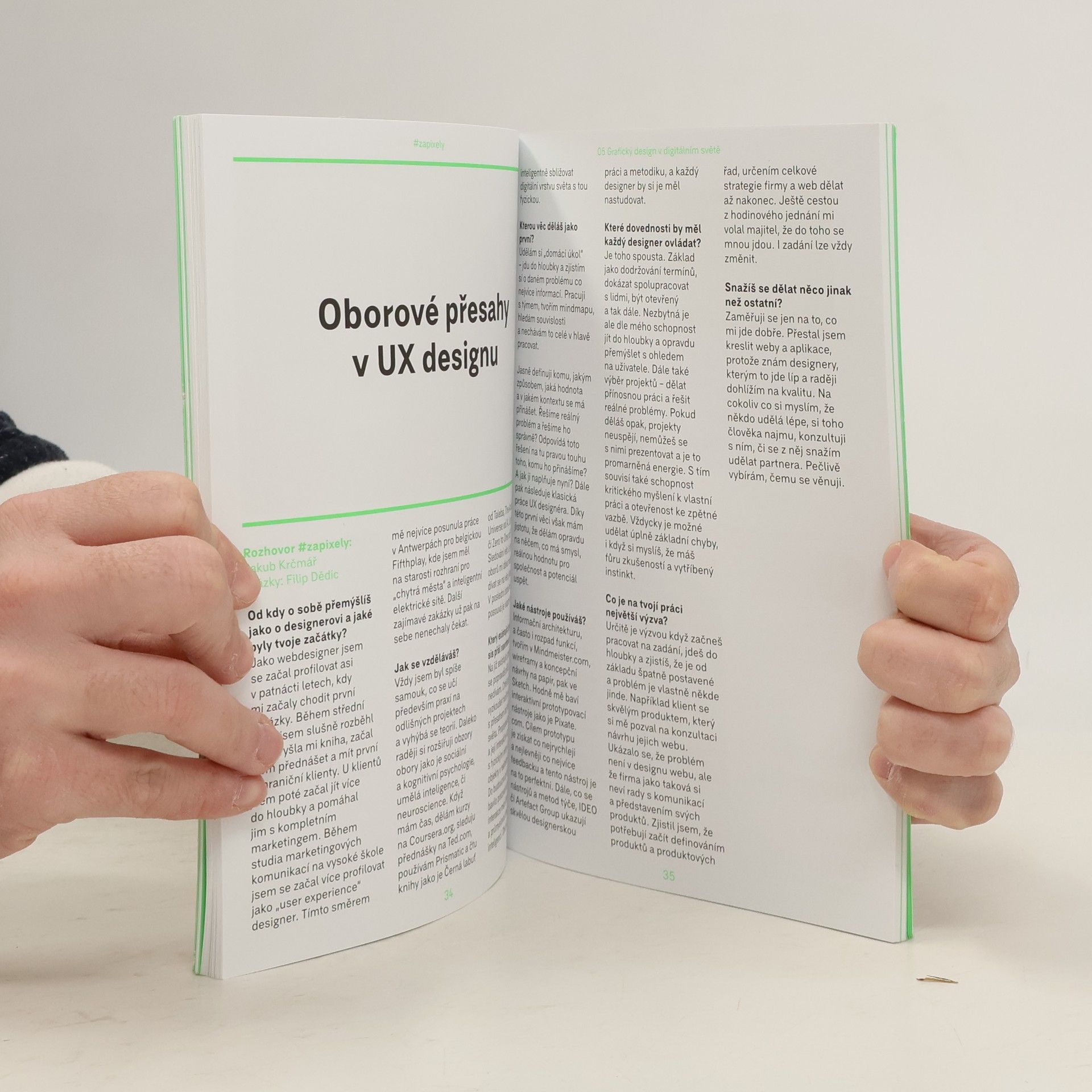 Praktická příručka a publikace zahrnující projekt #zapixely slouží jako přehled o oboru digitálního designu, o lidech, kteří v něm působí a představuje lidem z příbuzných a jiných oborů proces návrhu digitálního produktu. Věříme, že publikace je způsob, jak dále vzdělávat kolegy, kamarády, státní správu a veřejnost o tom, co to je digitální design a že je potřeba. Průvodce jednoduše shrnuje fáze procesu návrhu digitálních produktů a služeb a přibližuje svět za pixely každému, kdo se v oboru digitálního designu zatím tolik neorientuje.