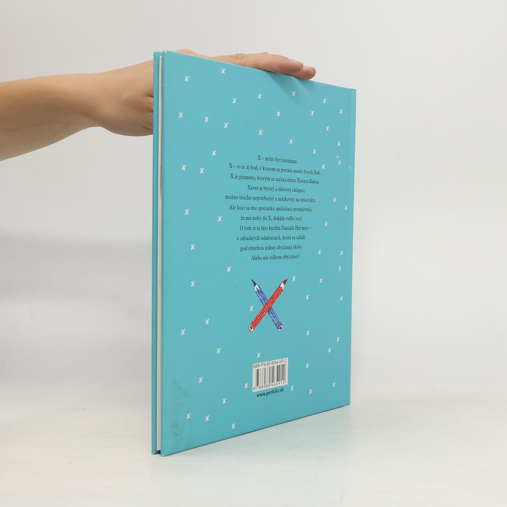 X - môže byť neznáma. X - to je aj bod, v ktorom sa pretnú osudy dvoch ľudí. X je písmeno, ktorým sa začína meno Xavera Baksu. Xaver je bystrý a šikovný chlapec, možno trochu nepriebojný a nešikovný na telocviku. Ale hoci sa mu spočiatku spolužiaci posmievajú, že má nohy do X, dokáže veľké veci. O tom je aj táto knižka Daniela Heviera - o záhadných udalostiach, ktoré sa udiali pod strechou jednej obyčajnej školy. Alebo nie celkom obyčajnej.