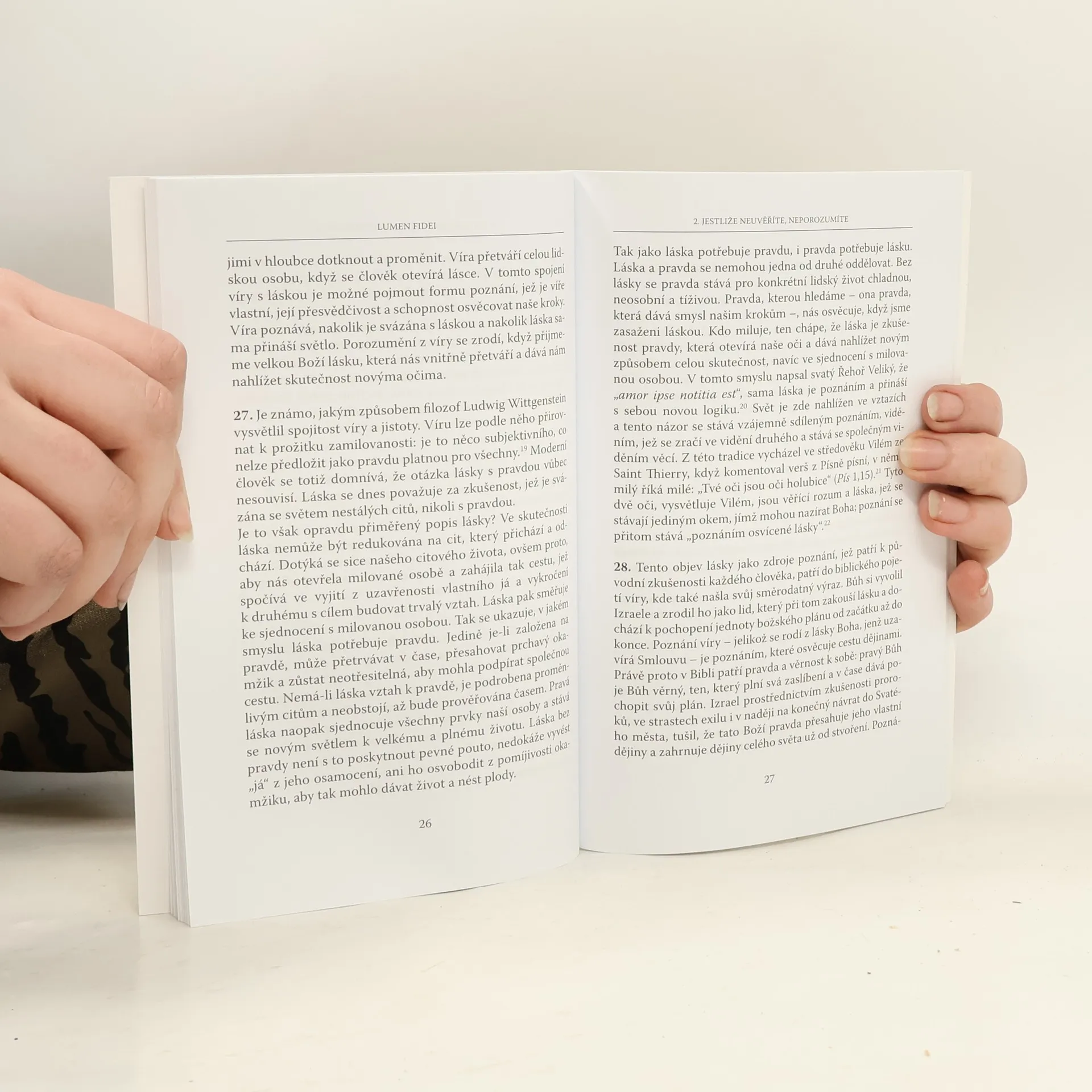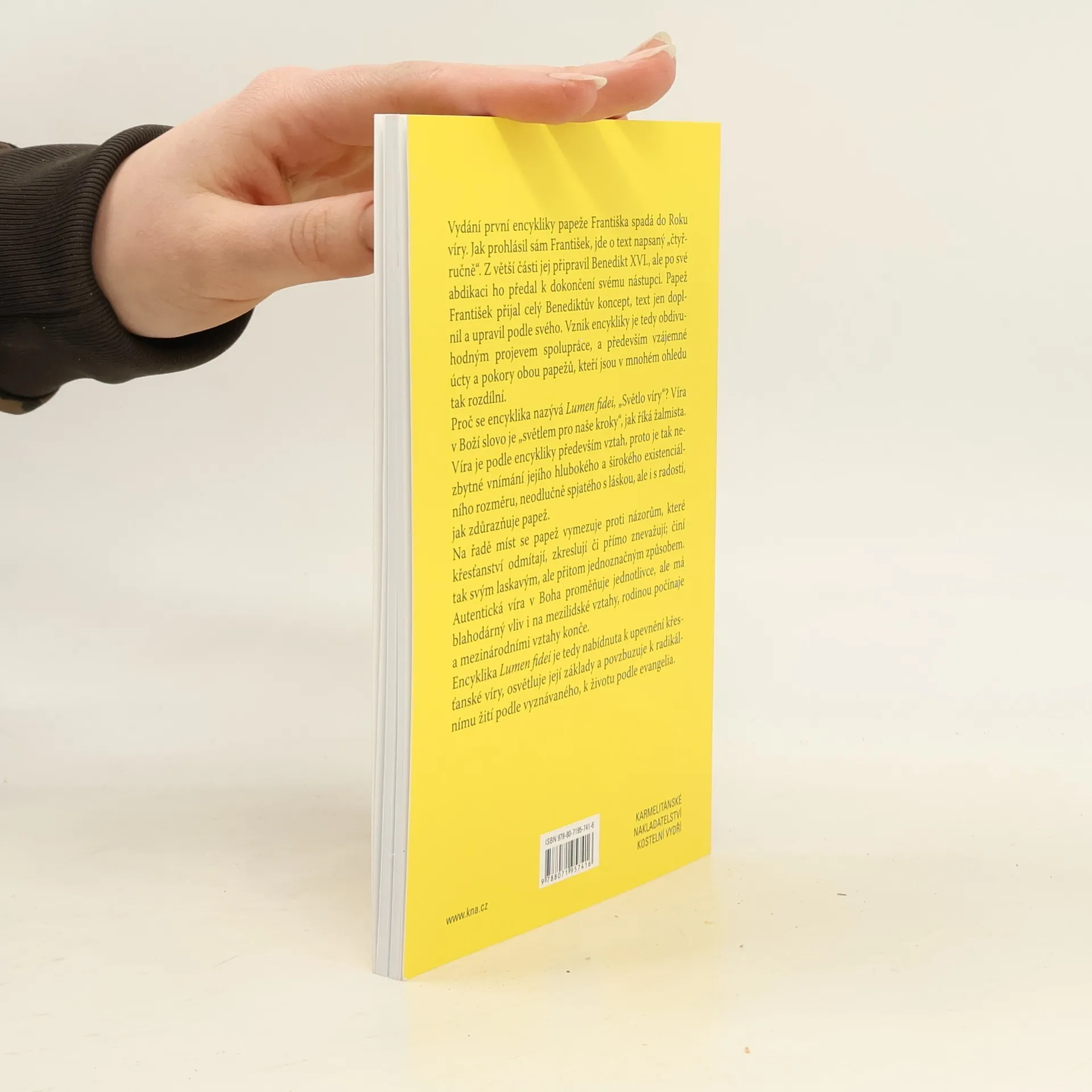 První encyklika papeže Františka. Z větší části ji připravil Benedikt SVI., ale po své abdikaci ho předal k dokončení svému nástupci. Papež František přijal celý Benediktův koncept, text doplnil a upravil. Vznik encykliky je tedy obdivuhodným projevem spolupráce. Proč se encyklika nazývá Lumen fidei, tedy Světlo víry? Víra v Boží slovo je "světlem pro naše kroky", jak říká žalmista. Víra je podle encykliky především vztah, proto je tak nezbytné vnímání jejího hlubokého a širokého existenciálního rozměru, neodlučně spjatého s láskou, ale i s radostí, jak zdůrazňuje papež. Na řadě míst se papež vymezuje proti názorům, které křesťanství odmítají, zkreslují či přímo znevažují; činí tak svým laskavým, ale přitom jednoznačným způsobem. Autentická víra v Boha proměňuje jednotlivce, ale má blahodárný vliv i na mezilidské vztahy, rodinou počínaje a mezinárodními vztahy konče. Encyklika Lumen fidei je tedy nabídnuta k upevnění křesťanské víry, osvětluje její základy a povzbuzuje k radikálnímu žití podle vyznávaného, k životu podle evangelia.