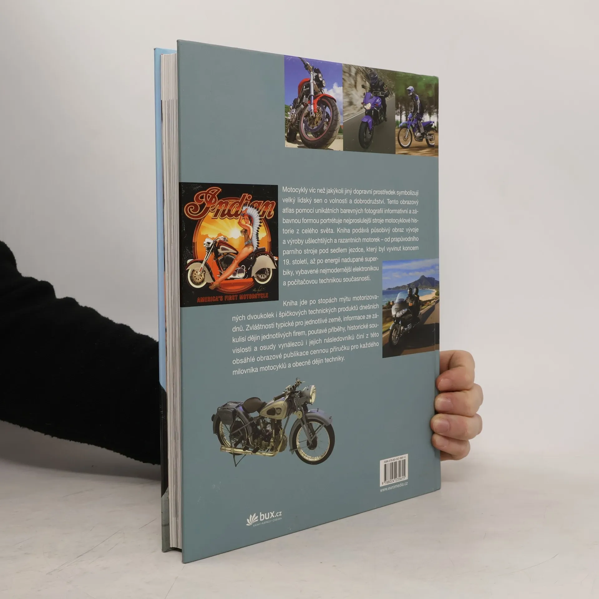 Motocykly víc než jakýkoli jiný dopravní prostředek symbolizují velký lidský sen o volnosti a dobrodružství. Tento obrazový atlas pomocí unikátních barevných fotografií informativní a zábavnou formou portrétuje nejproslulejší stroje motocyklové historie z celého světa. Kniha podává působivý obraz vývoje a výroby ušlechtilých a razantních motorek - od prapůvodního parního stroje pod sedlem jezdce, který byl vyvinut koncem 19. století, až po energií nadupané superbiky, vybavené nejmodernější elektronikou a počítačovou technikou současnosti.