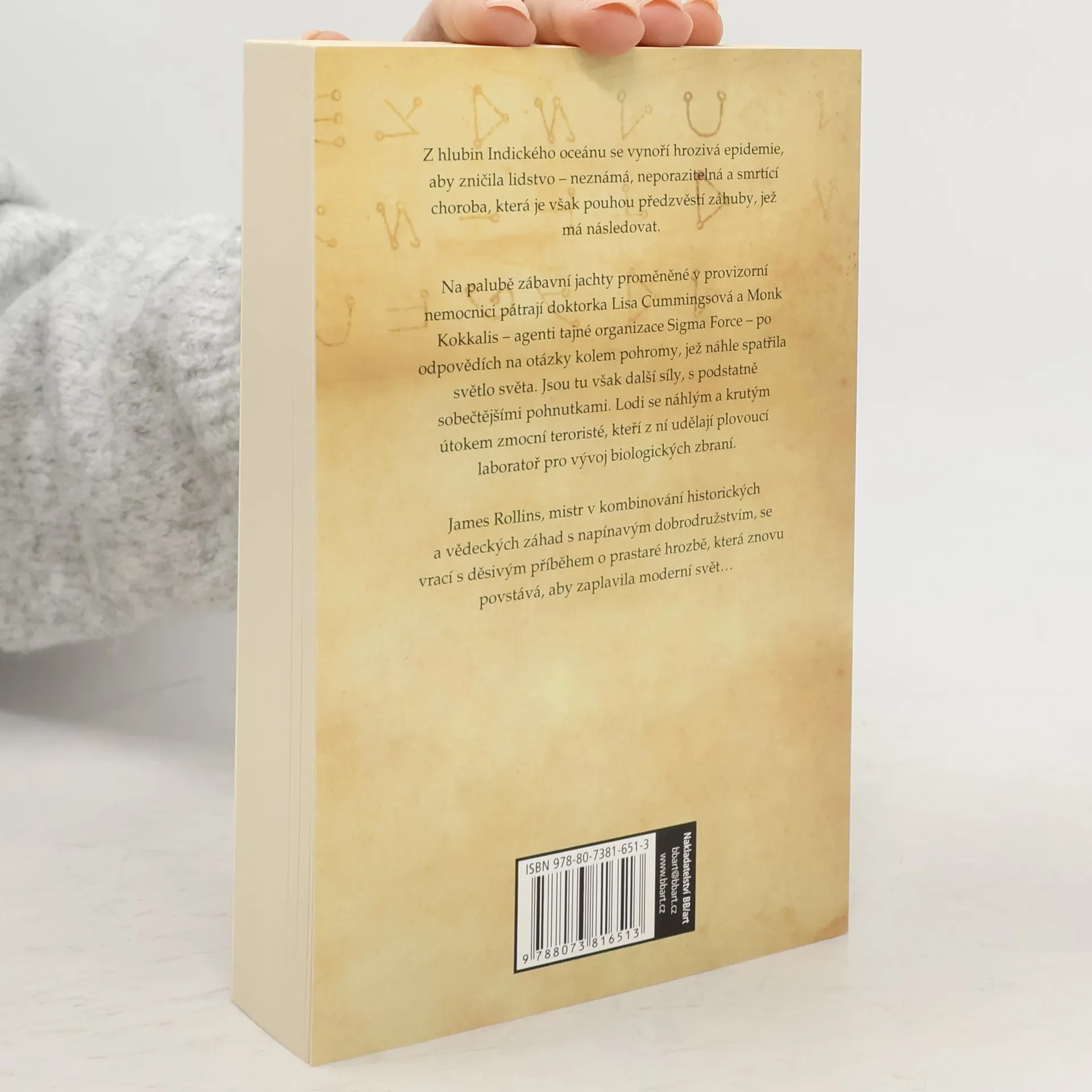 Z hlubin Indického oceánu se vynoří hrozivá epidemie, aby zničila lidstvo - neznámá, neporazitelná a smrtící choroba, která je však pouhou předzvěstí záhuby, jež má následovat. Na palubě zábavní jachty proměněné v provizorní nemocnici pátrají doktorka Lisa Cummingsová a Monk Kokkalis - agenti tajné organizace Sigma Force - po odpovědích na otázky kolem pohromy, jež náhle spatřila světlo světa. Jsou tu však další síly, s podstatně sobečtějšími pohnutkami. Lodi se náhlým a krutým útokem zmocní teroristé, kteří z ní udělají plovoucí laboratoř pro vývoj biologických zbraní. James Rollins, mistr v kombinování historických a vědeckých záhad s napínavým dobrodružstvím, se vrací s děsivým příběhem o prastaré hrozbě, která znovu povstává, aby zaplavila moderní svět.