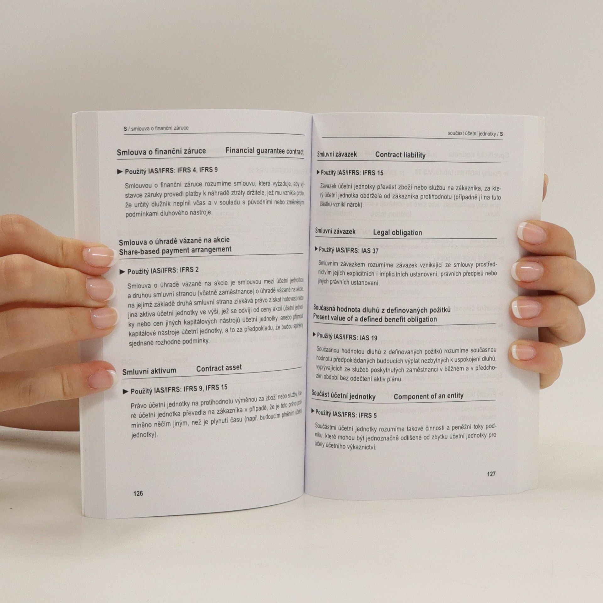 aktuálně platné definice pojmů IFRS •překladový můstek z ČJ do AJ a zpět •vazby na jednotlivé IAS/IFRS Publikace obsahuje překlad platných definic pojmů z oblasti Mezinárodních standardů účetního výkaznictví (IFRS). Slovník je doplněn výkladem jednotlivých pojmů a také množstvím názorných schémat a příkladů. Dále obsahuje seznam aktuálně platných standardů (IFRS, IAS) a interpretací (IFRIC, SIC), jakož i překladový můstek pojmů IFRS z češtiny do angličtiny a zpět, a to včetně uvedení vazeb na jednotlivé účetní standardy.