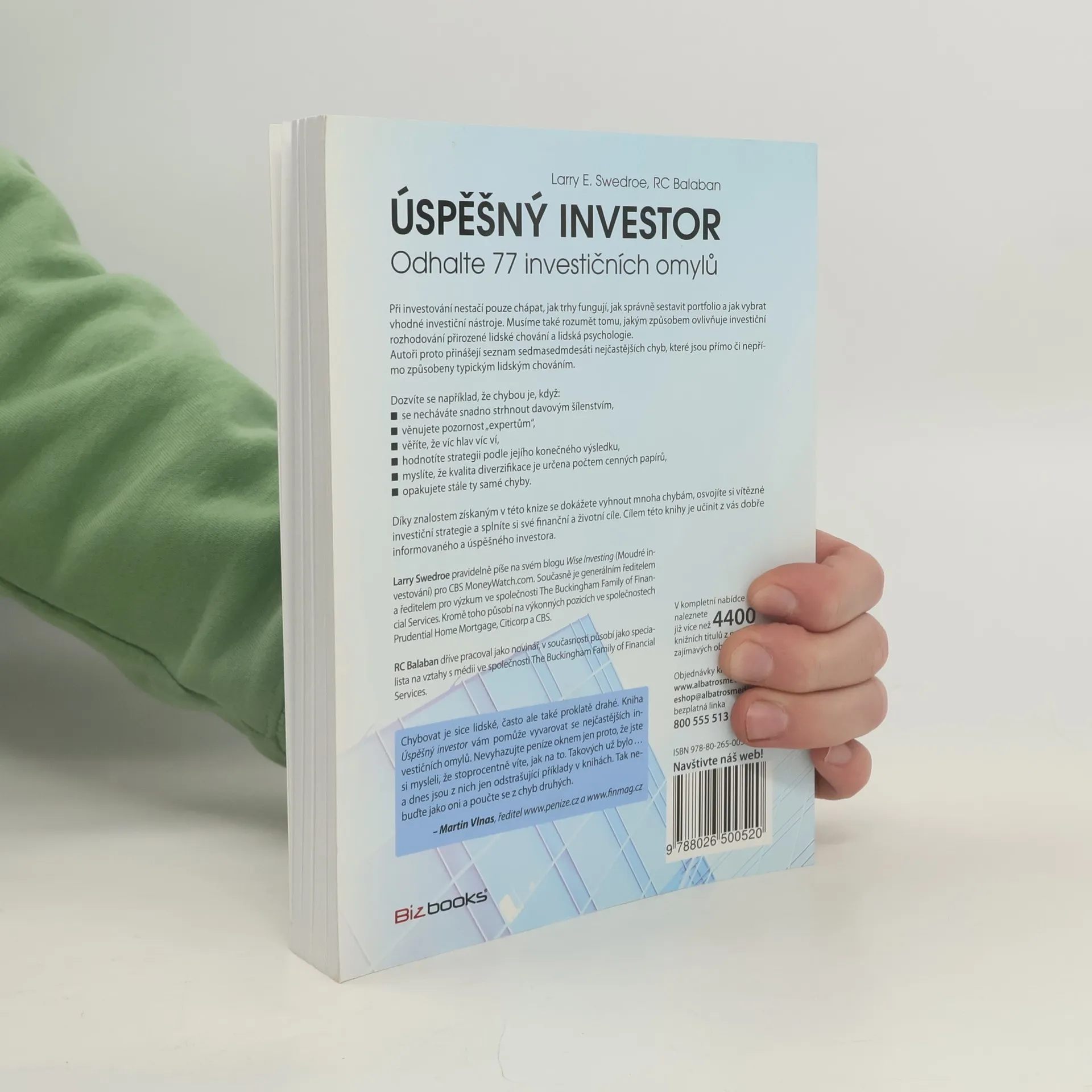 Při investování nestačí chápat trhy, sestavit portfolio a vybrat investiční nástroje; klíčové je také porozumět vlivu lidského chování a psychologie na investiční rozhodování. Mnozí investoři, bez dostatečného formálního vzdělání, se spoléhají na hluboce zakořeněné názory, které mohou být mylné, což vede k katastrofálním chybám. Larry Swedroe, s patnáctiletou zkušeností jako předseda a ředitel výzkumu ve společnosti Buckingham Family of Financial Services, byl svědkem mnoha chyb, které stály investory značné peníze. Tyto chyby pramení z lidských vlastností, jako je nadměrné sebevědomí, které může vést k přehnanému riziku. Autoři představují seznam sedmasedmdesáti nejčastějších chyb, ovlivněných typickým lidským chováním. Mezi tyto chyby patří například snadné podléhání davovému šílenství, důvěra v „experty“, hodnocení strategie podle konečného výsledku, nebo mylné přesvědčení, že kvalita diverzifikace závisí na počtu cenných papírů. Získané znalosti vám pomohou vyhnout se mnoha chybám, osvojit si úspěšné investiční strategie a dosáhnout svých finančních cílů. Cílem je stát se dobře informovaným investorem.