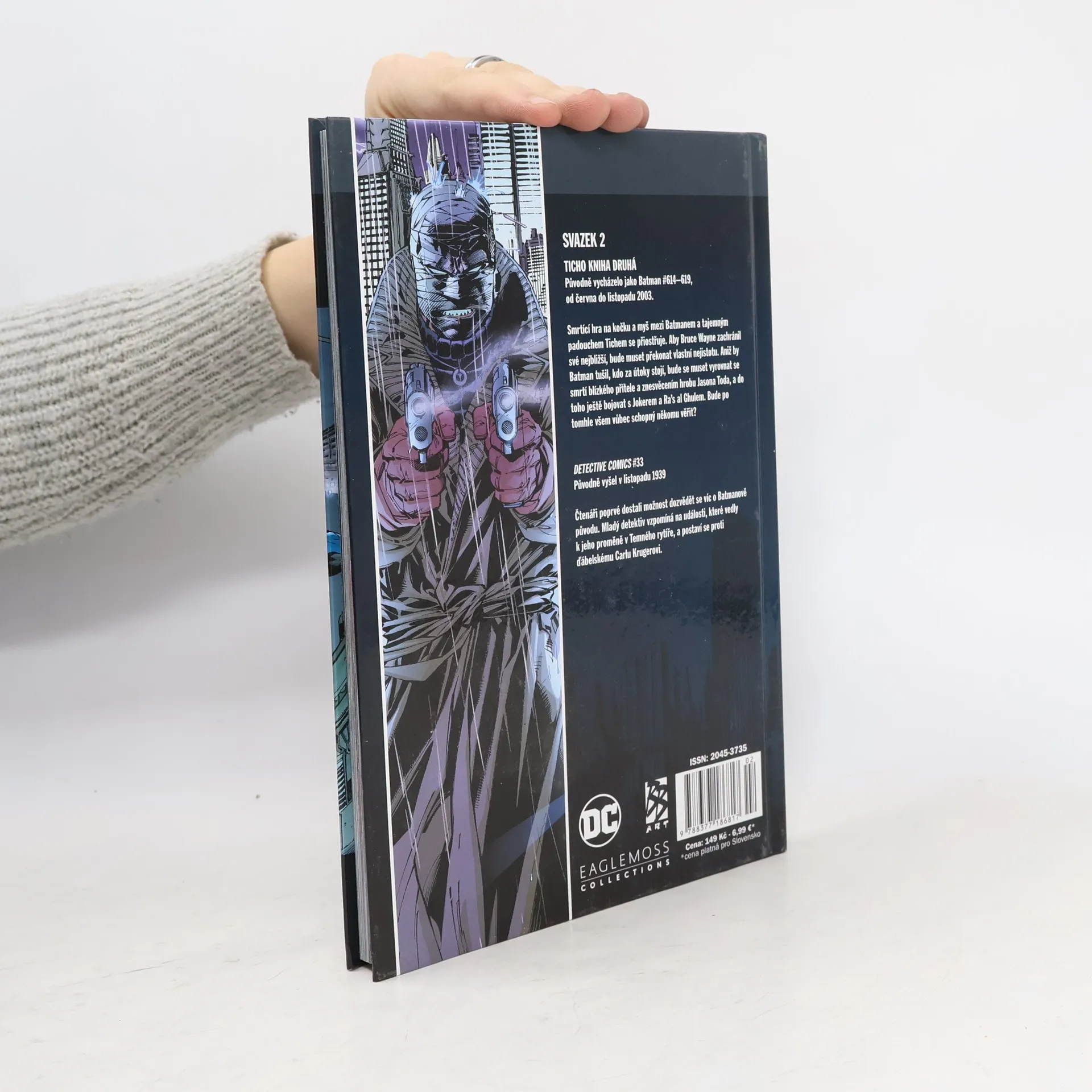 V druhém díle komiksu Batman: Ticho se Temný rytíř utkává se spoustou známých padouchů, včetně Scarecrowa, Ra's al Ghula, Two-Face, Riddlera... a dokonce i samotného Jokera. A postupně se Batman dostává blíž a blíž k tajemnému muži v obvazech, který se všemi manipuluje. Jenže dostat se k němu blízko a porazit ho, to jsou dvě zcela odlišné věci.