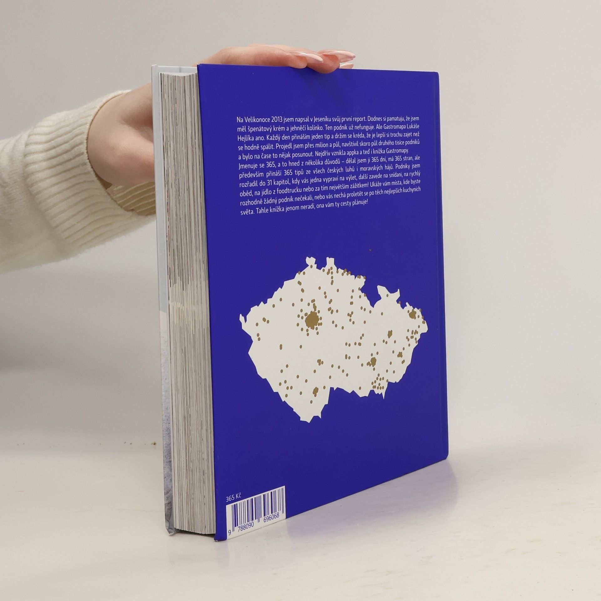 Jmenuje se 365, a to hned z několika důvodů – dělal jsem ji 365 dní, má 365 stran, ale především přináší 365 tipů ze všech českých luhů i moravských hájů. Podniky jsem rozřadil do 31 kapitol, kdy vás jedna vypraví na výlet, další zavede na snídani, na rychlý oběd, na jídlo z foodtrucku nebo za tím největším zážitkem! Ukáže vám místa, kde byste rozhodně žádný podnik nečekali, nebo vás nechá proletět se po těch nejlepších kuchyních světa. Tahle knížka jenom neradí, ona vám ty cesty plánuje!