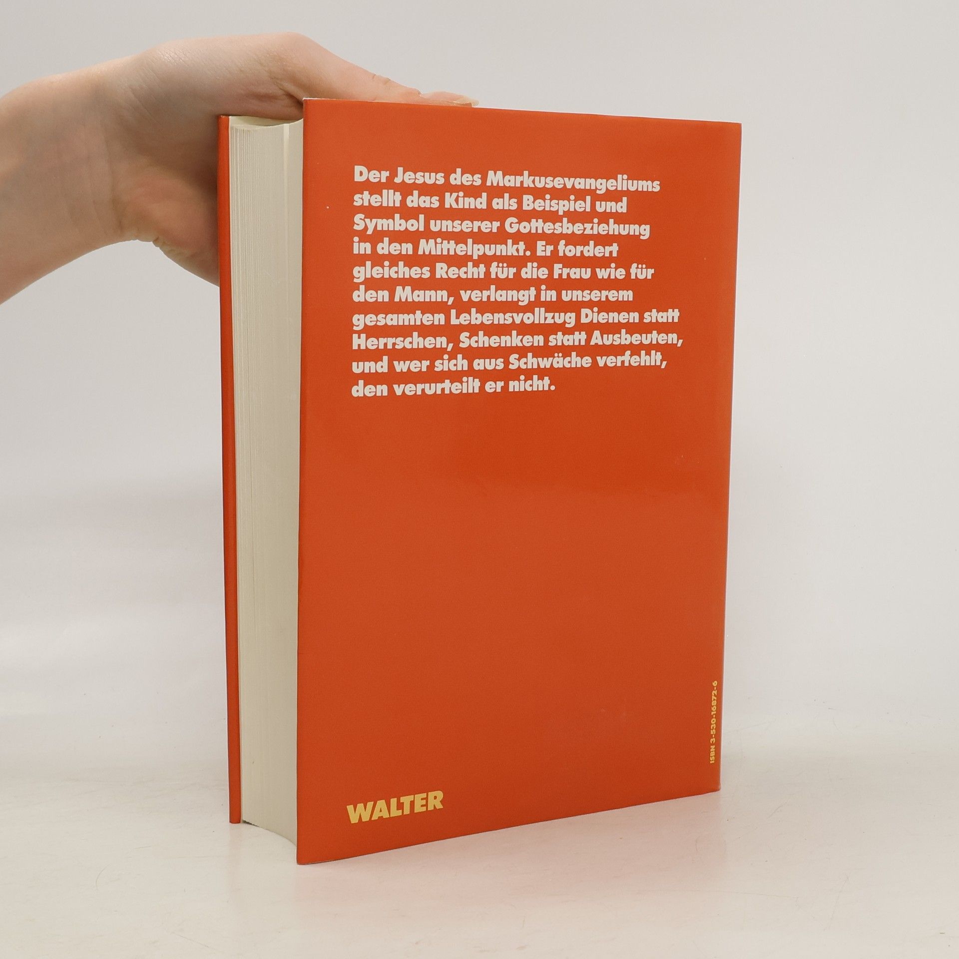 Der Jesus des Markusevangeliums stellt das Kind als Beispiel und Symbol unserer Gottesbeziehung in den Mittelpunkt. Er fordert gleiches Recht für die Frau wie für den Mann, verlangt in unserem gesamten Lebensvollzug Dienen statt Herrschen, Schenken statt Ausbeuten, und wer sich aus Schwäche verfehlt, den verurteilt er nicht.